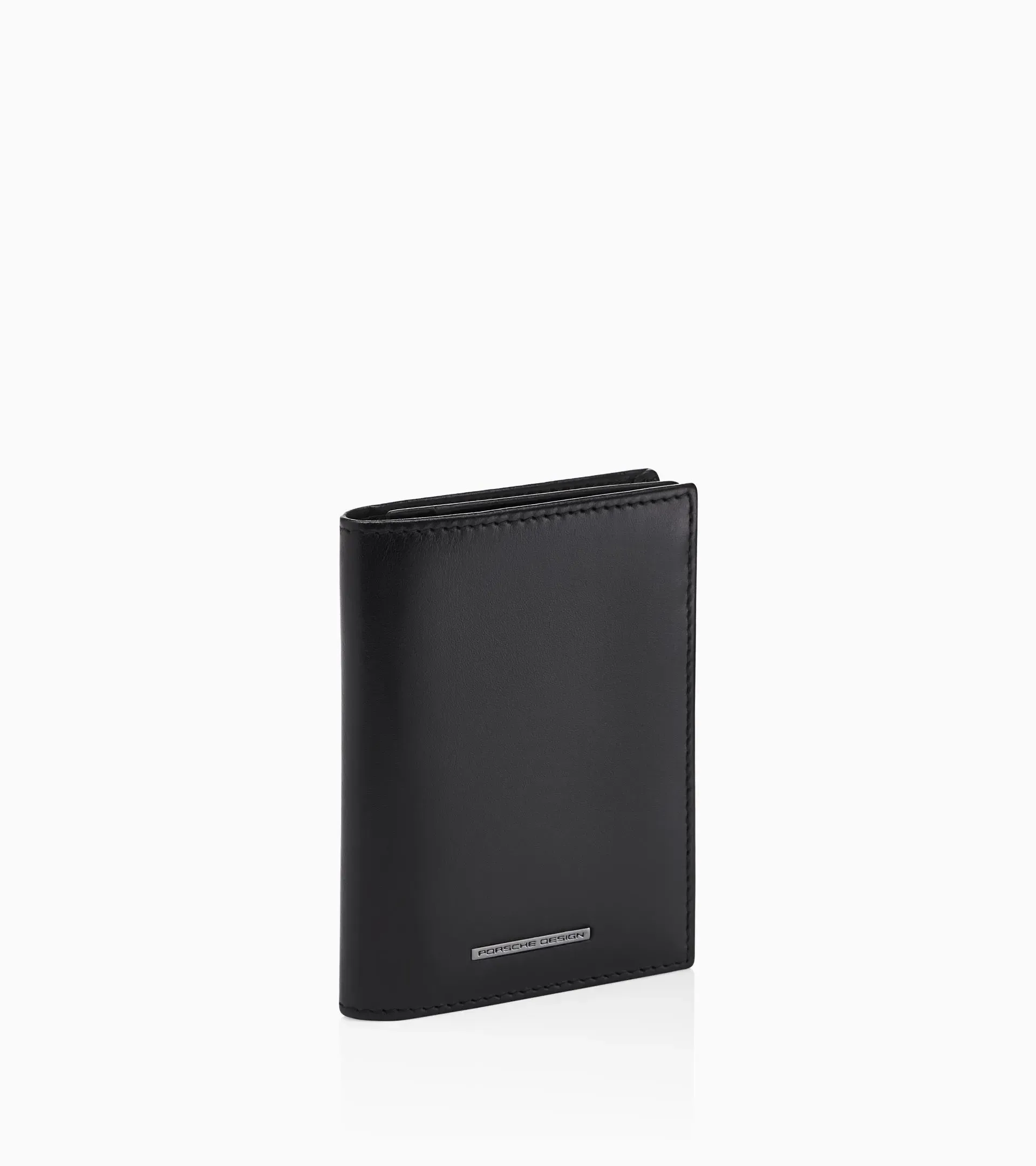 Vertical bifold card holderCrafted from smooth calf leather with Porsche Design metal logo tagOne large pocket behind the ID slot, and one pocket behind the card slotsOne mesh pocket for IDRFID protectionTwo card slots