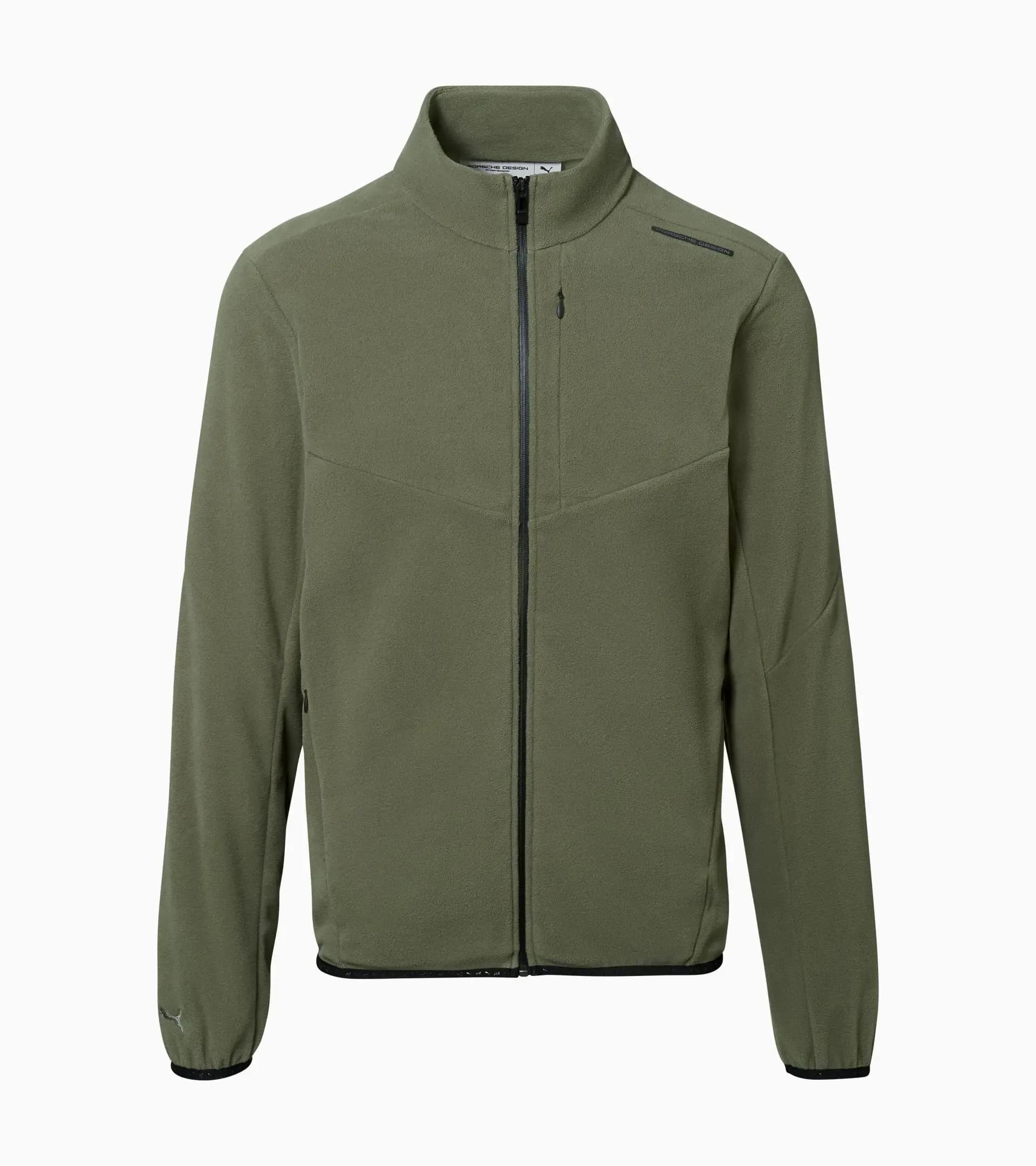 Stamina, performance, feel-good factor: the Porsche Design Fleece Jacket offers everything you need in a training partner. Plus, it keeps you warm after tough drills – or on cool summer nights. The innovative blend of INSULATION Polartec® Micro Velour/Fleece Solid Recycled combines excellent thermal insulating characteristics with maximum comfort. Air pockets in the fabric allow the exclusive training jacket to collect warmth quickly – and store it longer. Thanks to its dynamic design with a stand-up collar and hidden pockets on the sides and chest, it looks good both on and off the track. DETAILS: Fleece jacket made of INSULATION Polartec® micro velour/recycled solid fleece. High-comfort thermal insulation. Dynamic design with stand-up collar and hidden pockets. Two slip pockets on sides, zipper pocket on chest. Porsche Design x PUMA edging on cuffs.