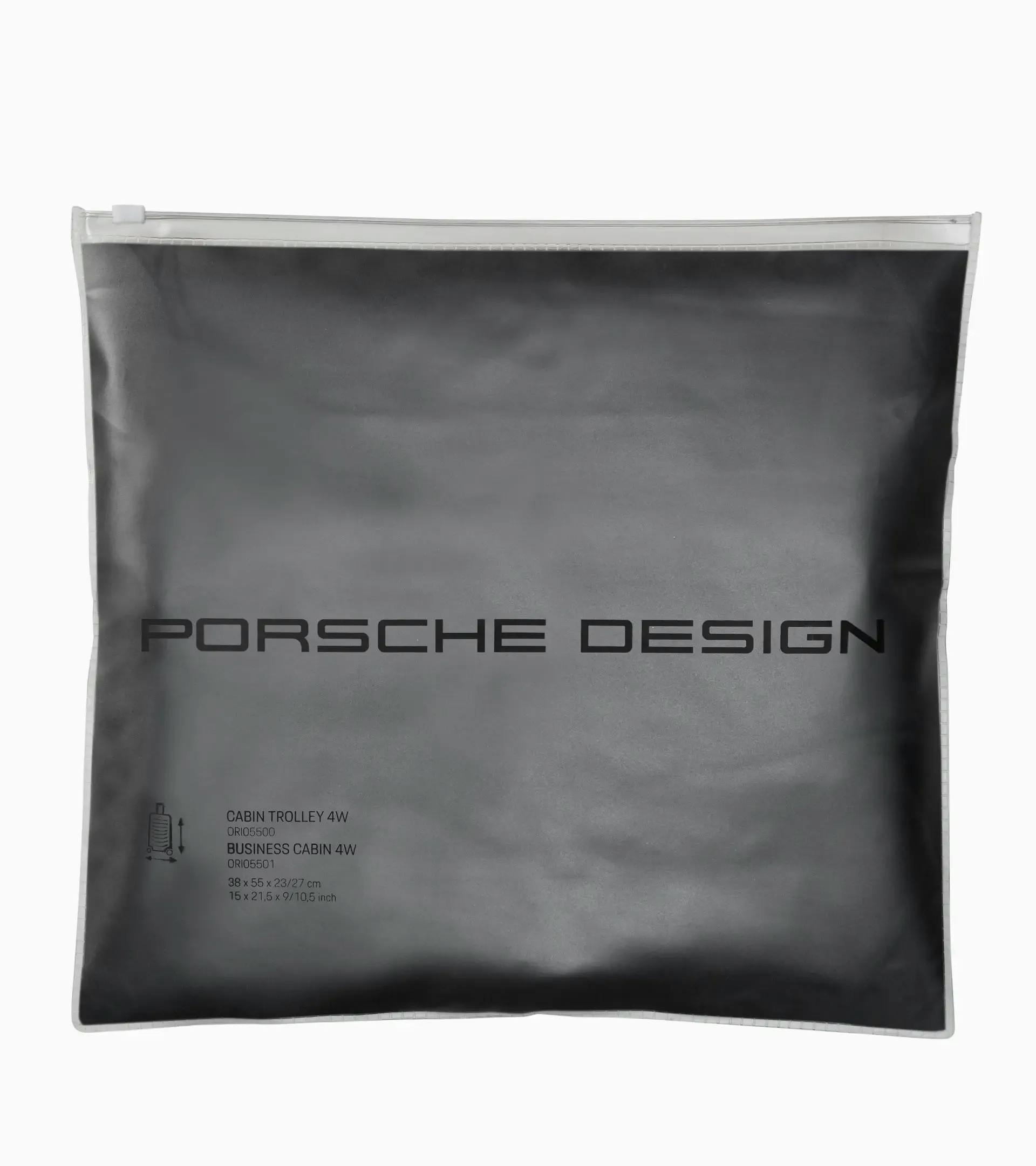 Stylish protection: the hard-case cover is perfect for protecting the Porsche Design Roadster Trolley from scratches and dirt whenever you are on the go. The cover simply slips on over the Roadster Trolley and is secured with a zip on the underside. Openings have been specially incorporated, ensuring that handles remain easily accessible. The Porsche Design logo print on the front ensures a classically elegant style, while the soft neoprene surface provides additional protection.