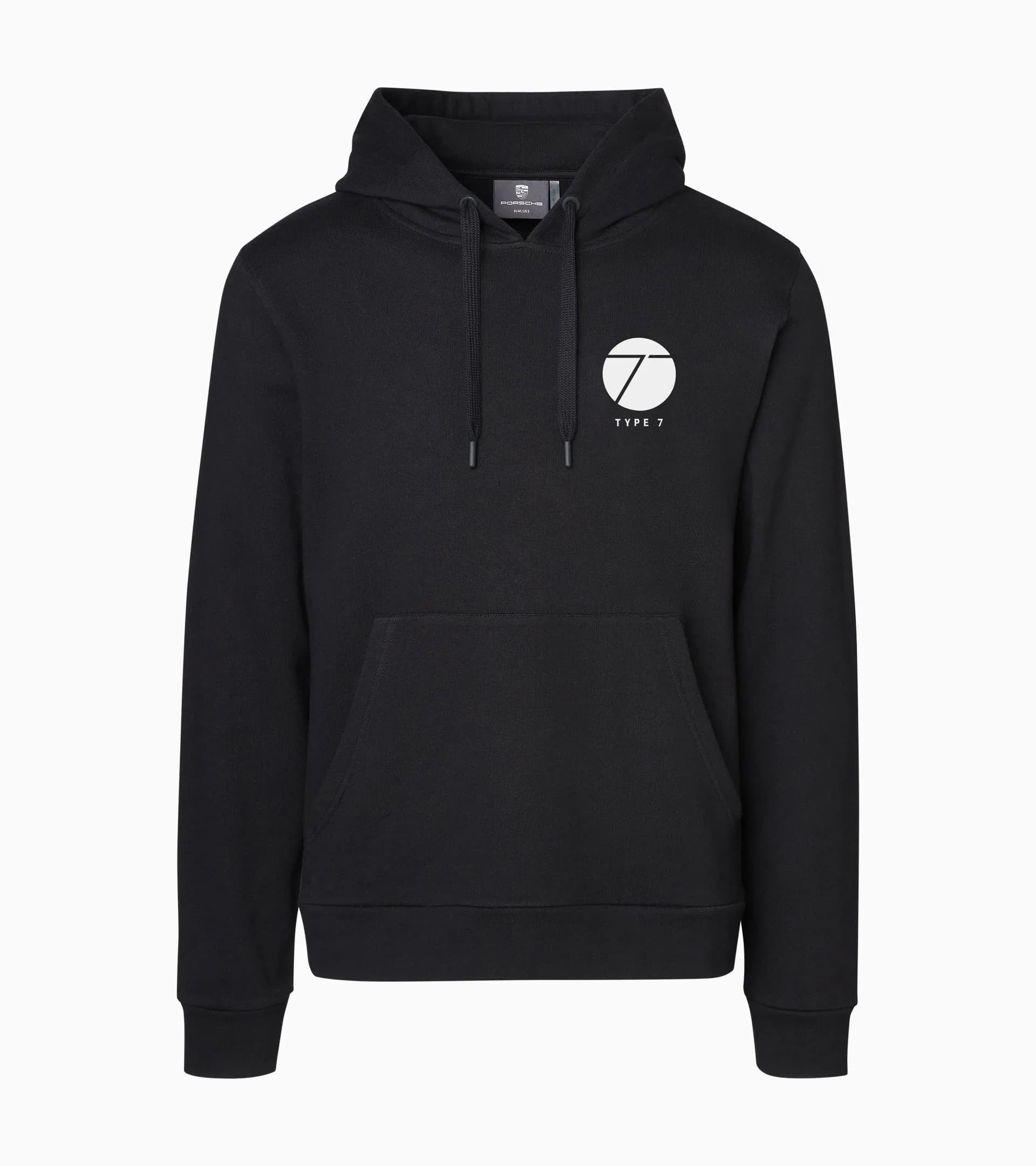 With the Type 7 hoodie in black and its unusual Type 7 rubber badge, we wanted to create something that goes with nearly everything: your everyday life and the extraordinary days in your life. So we came up with a casual and minimalist design that can be combined in many ways.