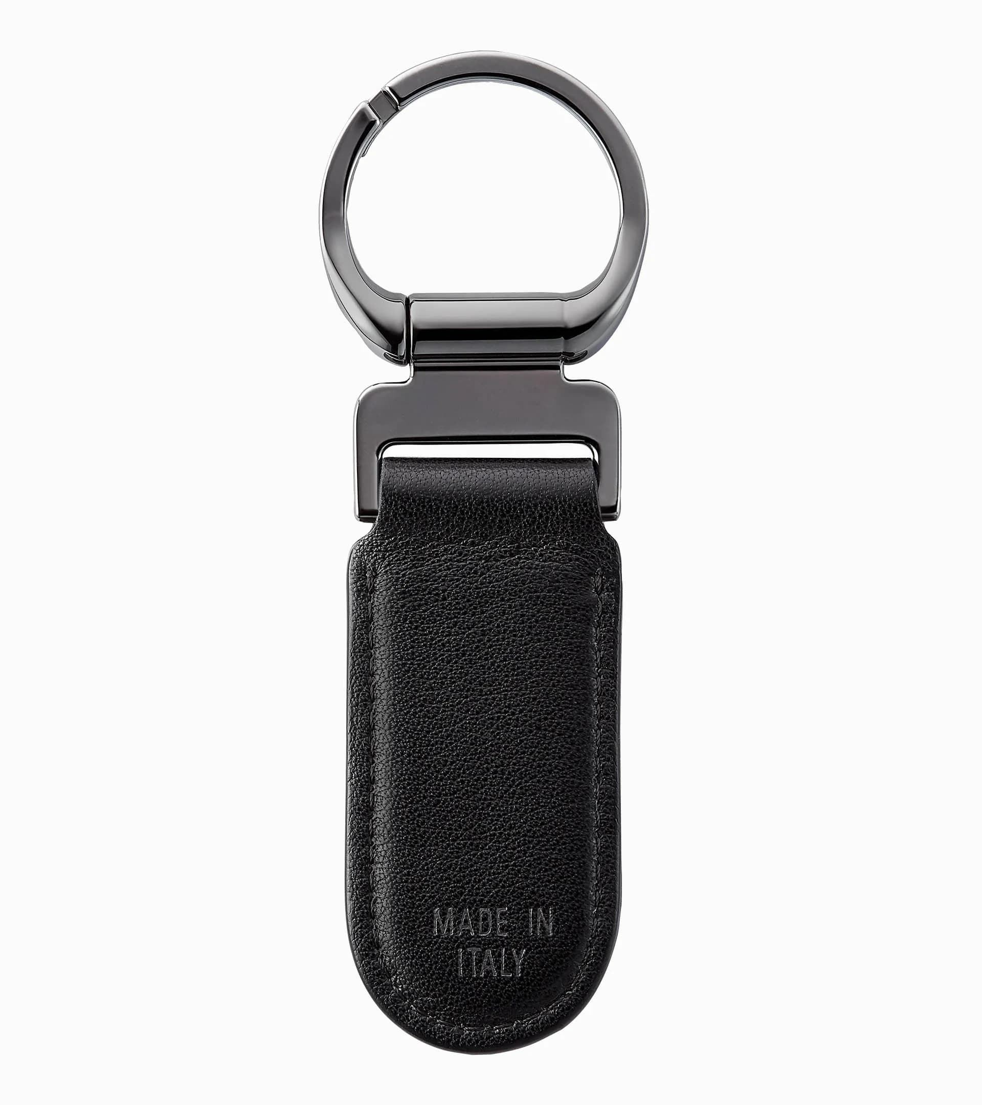 Technically elegant key fob for men. Leather key ring with embossed Porsche Design logo and exclusive spring mechanism as closure.