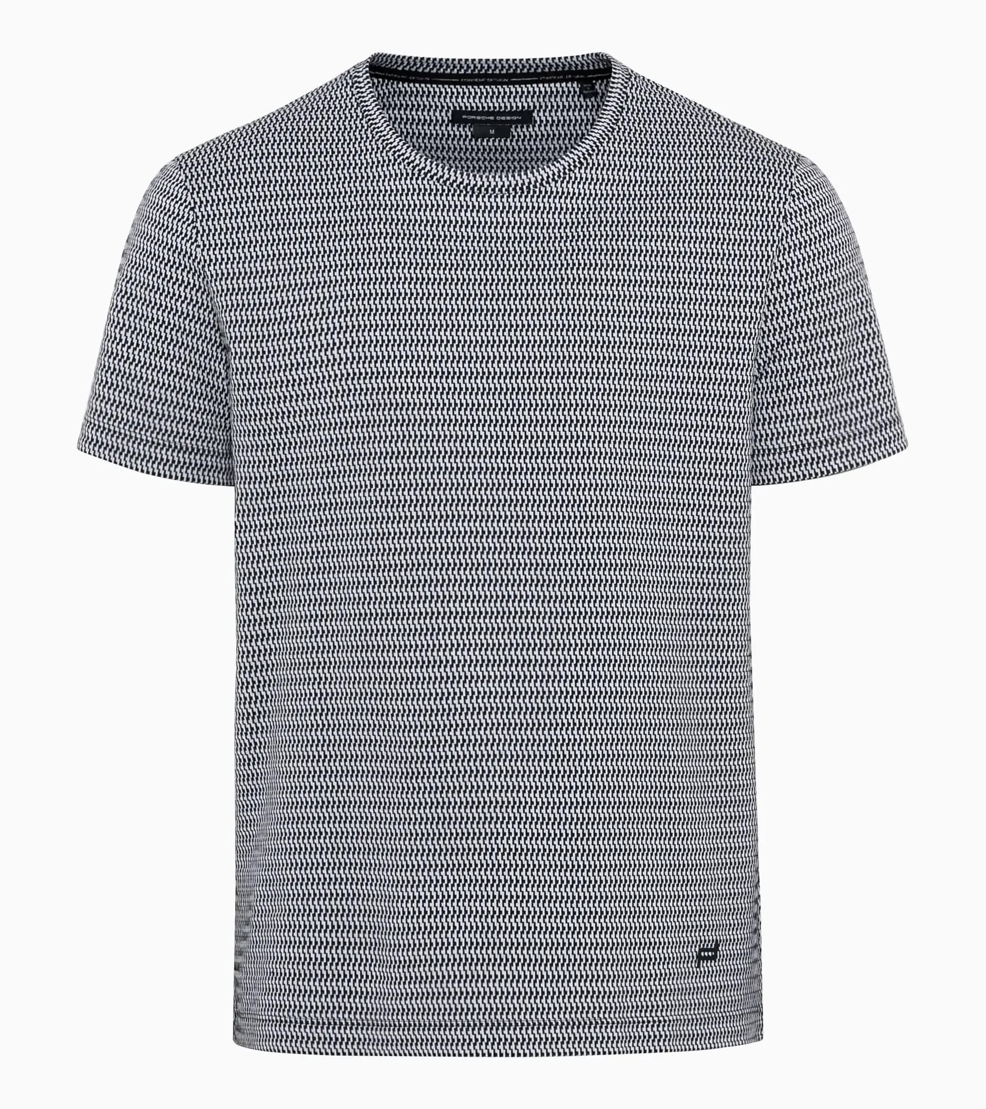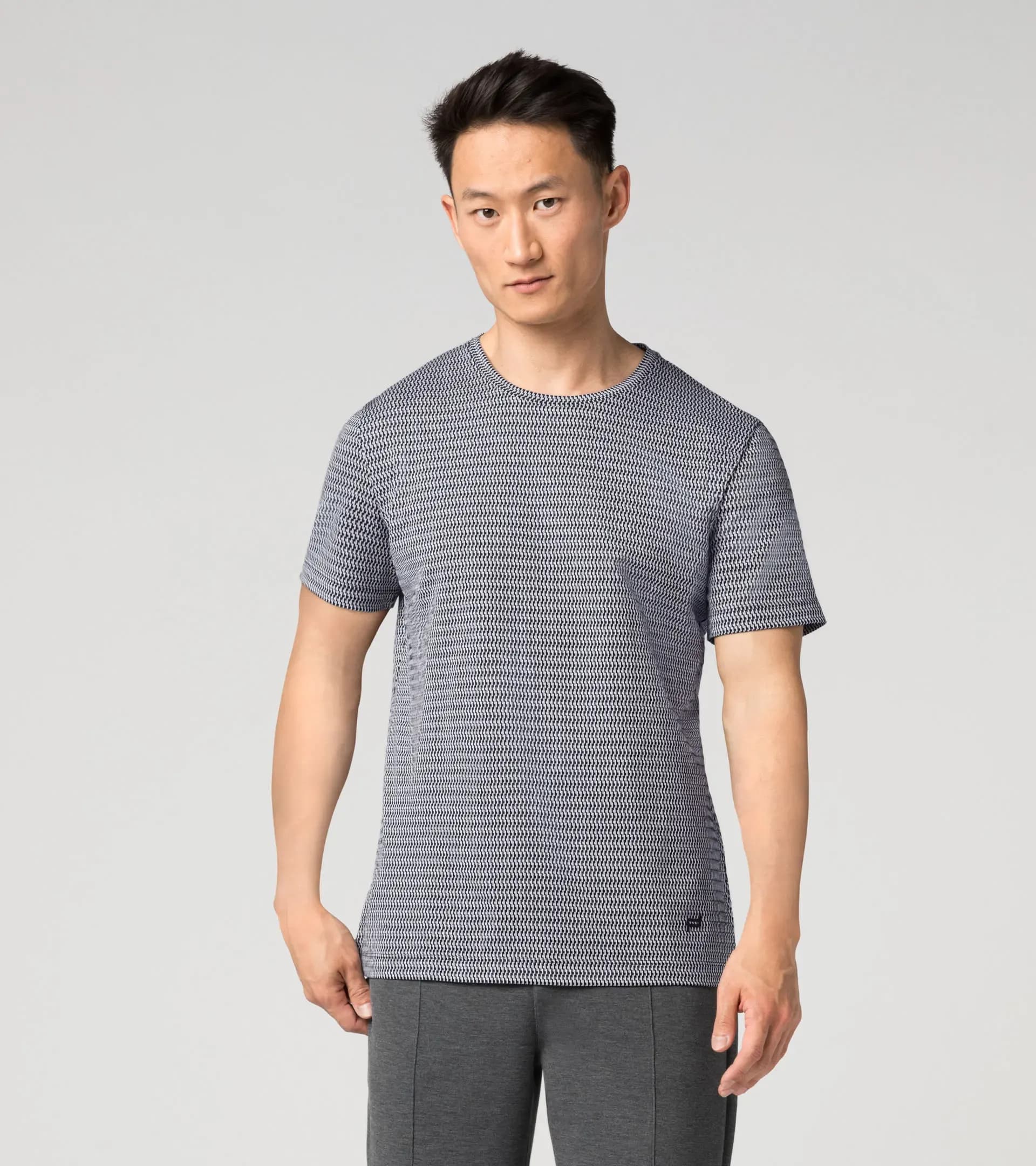 A pattern like no other. Technically. Dynamic. Exclusive Porsche Design. The uniquely textured cotton jacquard of the Porsche Design Minimalistic Checked T-Shirt was developed just for Porsche Design. The technical pixel diamond pattern in contrasting colors fits perfectly into the line of iconic patterns that have defined Porsche style – like the houndstooth pattern, popular for the seats of the 911 and favorite of designer F.A. Porsche. For this new men's T-shirt, the innovative pixel pattern is crafted as a bespoke jacquard and combined with a minimalist design, making the fabric stand out to perfection. The slim fit, a PD icon stamp on the hem and the Porsche Design logo neck tape on the inner collar reinforce the modern look.