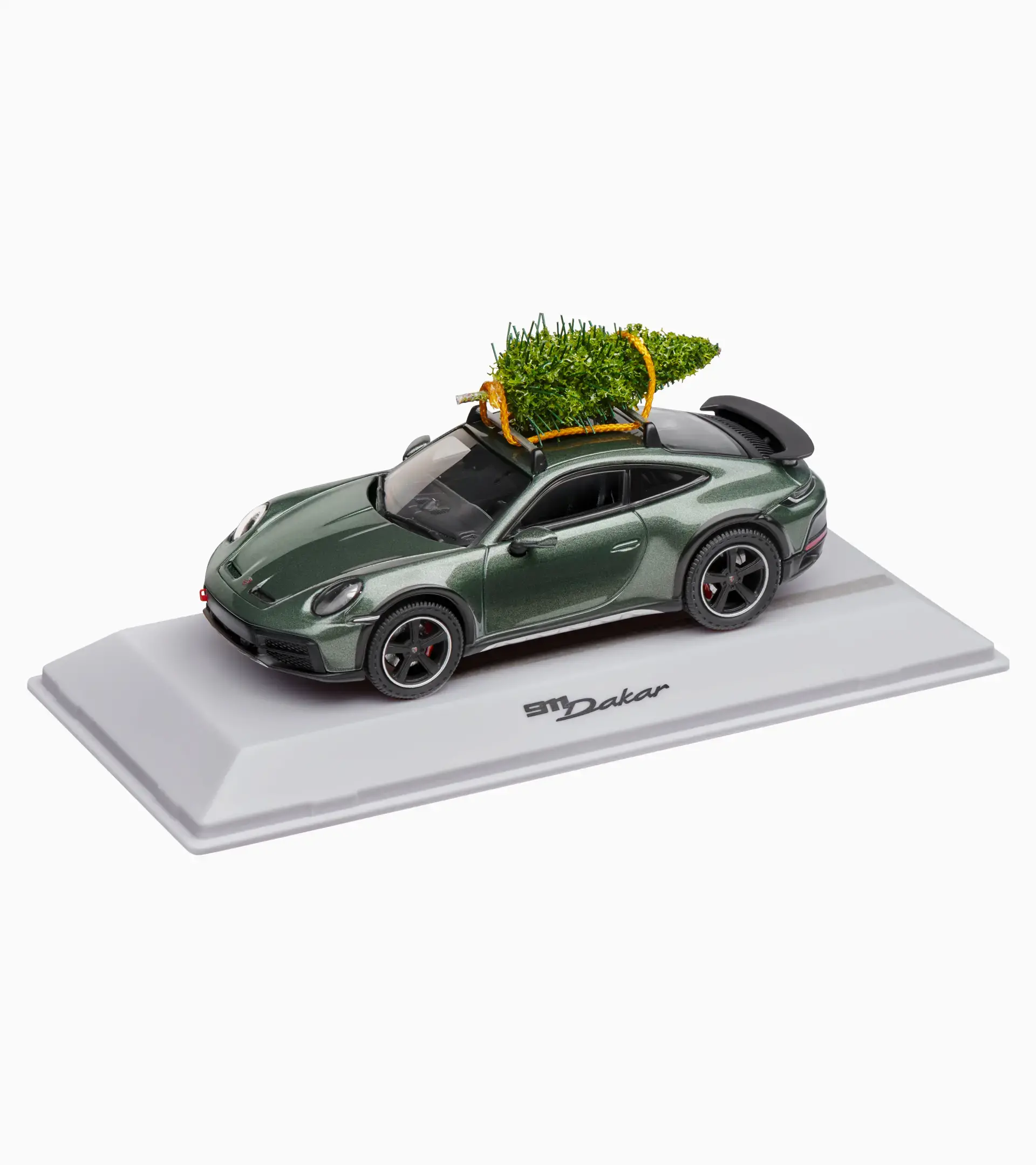 The exclusive 1:43 scale model of the Porsche 911 Dakar (992) Christmas edition with Christmas tree showcases impressive attention to detail and deserves its place in any collection. In exclusive packaging, making it the perfect gift for all Porsche fans.