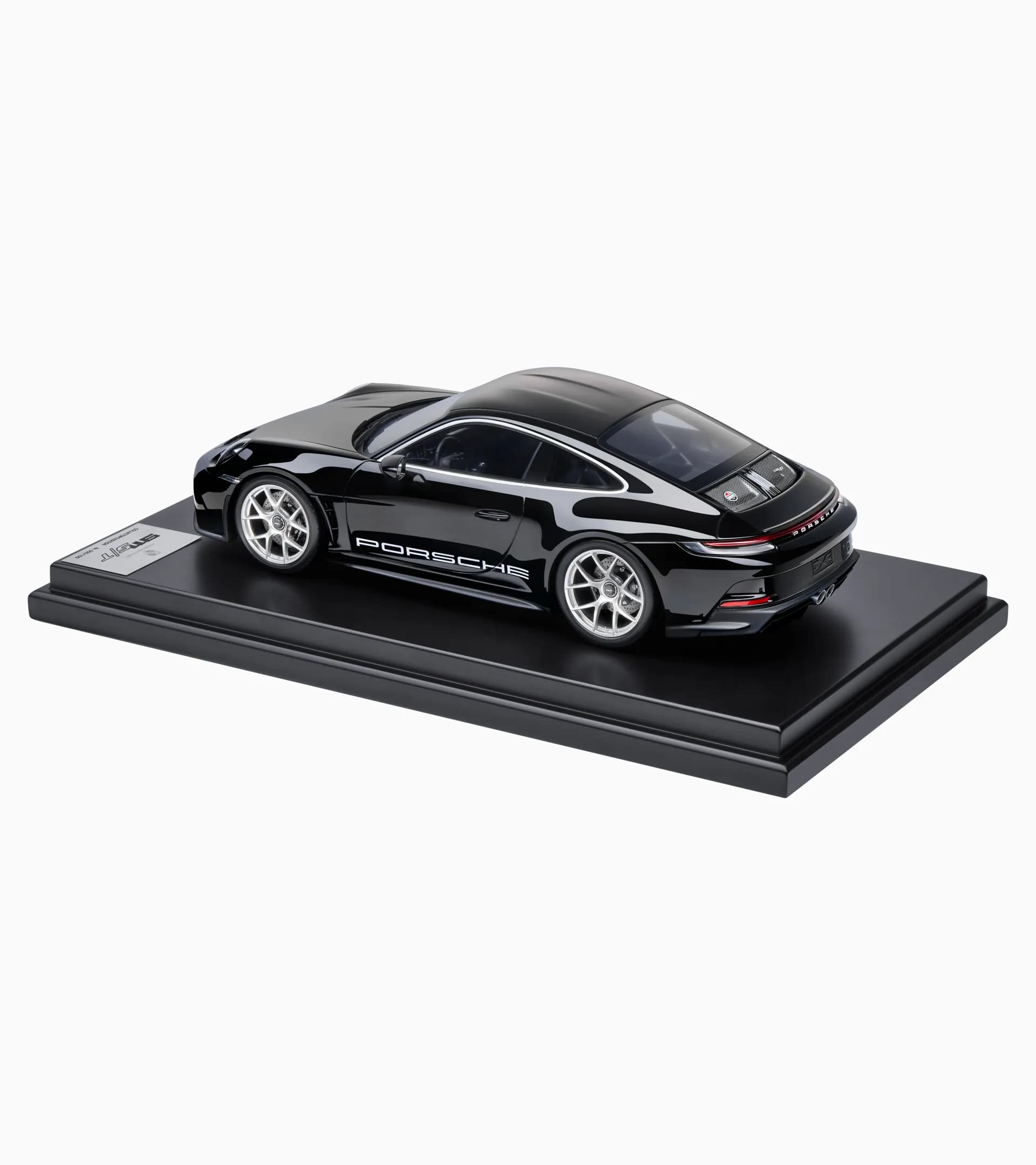 The exclusive, limited model of the Porsche 911 S/T (992) in a scale of 1:12 impresses with its attention to detail and is a must-have for any collector. It is crafted from resin. Exterior and interior in black.