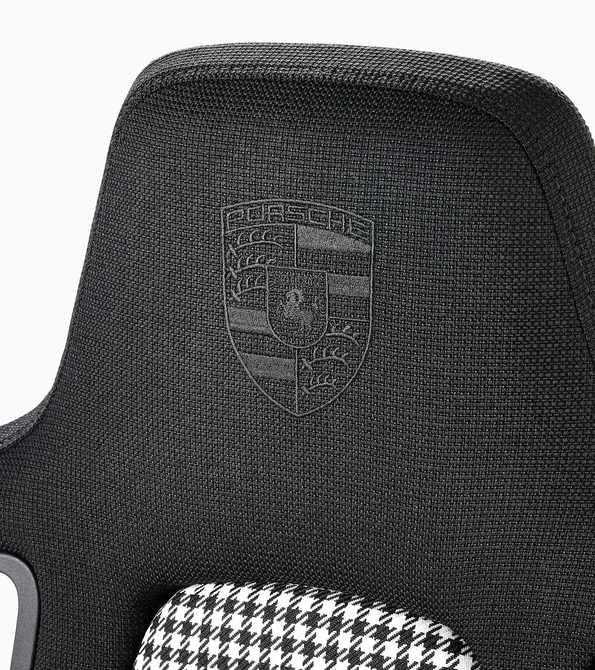 Exclusive Porsche gaming chair in collaboration with RECARO. For comfortable seat performance – whether for gaming or working at home. Gaming chair in elegant Pepita houndstooth look. Design by Studio F. A. Porsche. Made in Germany. Limited edition.