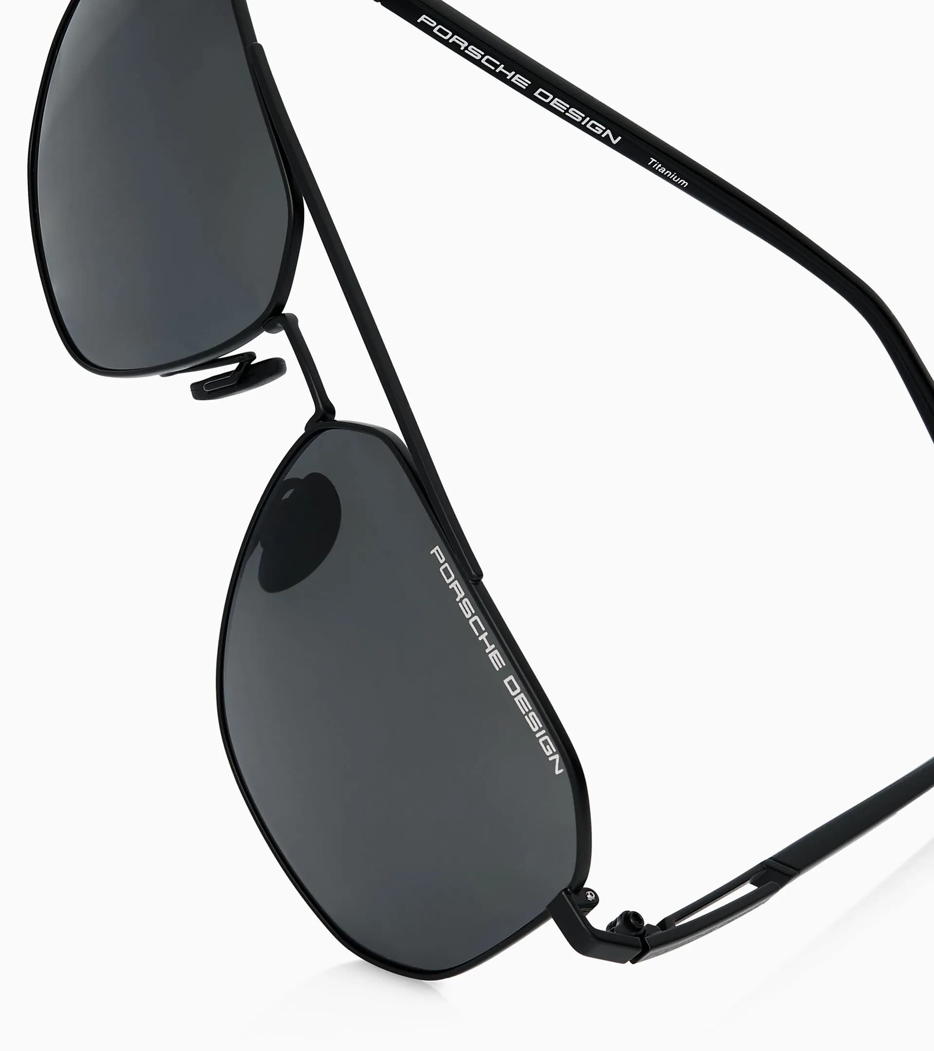 ‘Design is not simply art, it is the elegance of function.’ The Porsche Design P'8967 sunglasses perfectly reflect this quote from F.A. Porsche – in the form of an innovative spring hinge that is both a design and a functional element. The Air Spring flex zone is the further development of the spring hinge and guarantees maximum comfort through an optimal reduction of the lateral pressure. The design also exudes Porsche Design DNA: the frame is made of pure titanium and has a three-dimensional look thanks to the slender double bridge and the distinctive lens shape, underlining the exclusive character of the sunglasses. Available in colour combinations A (Black, Black), B (Palladium, Grey), C (Gold, Black) and D (Blue, Black). With polarised lens technology in colour combination A (Black, Black) and with polarised XTR lens technology in colour combination B (Palladium, Grey).