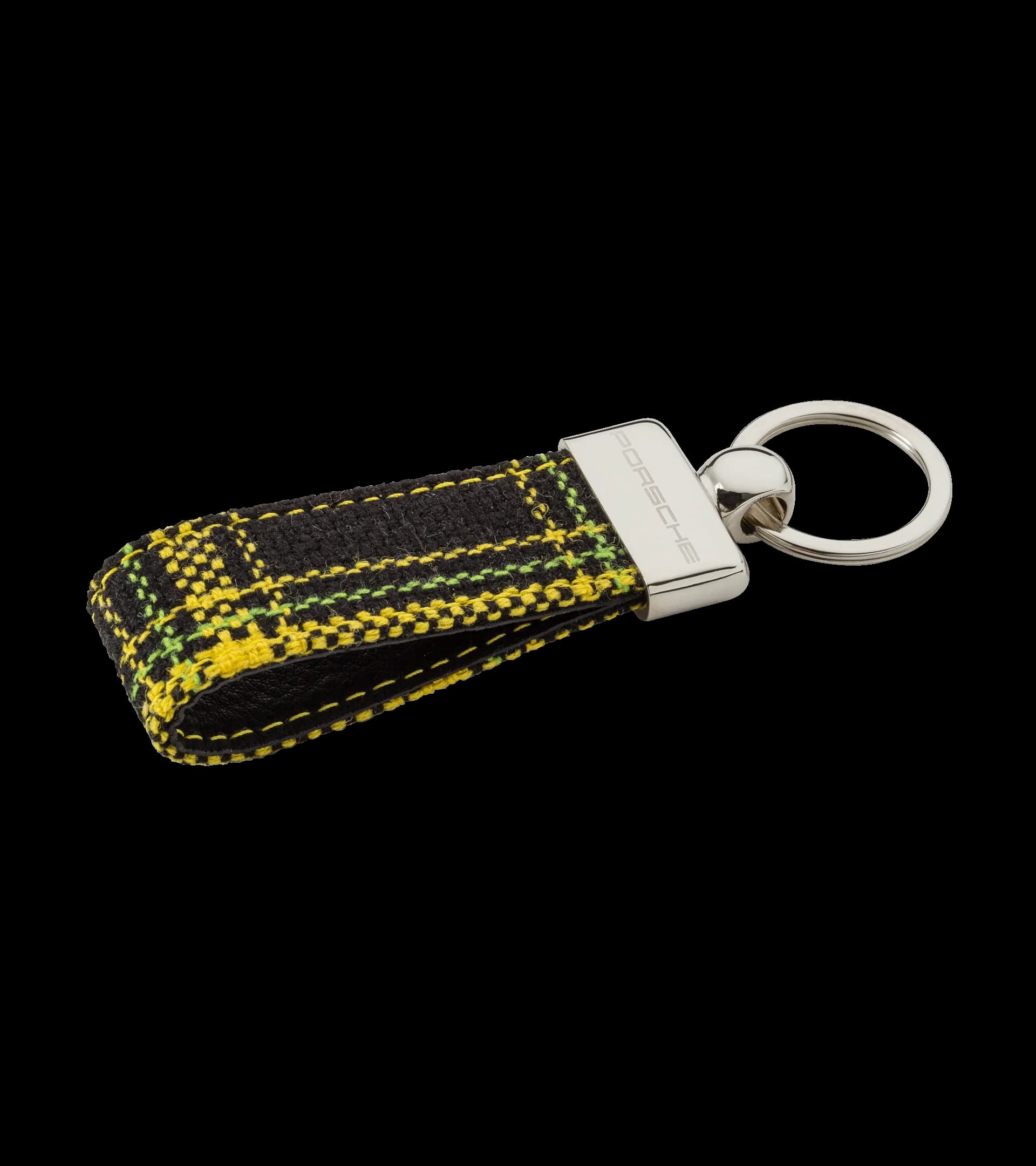 Exclusive "tartan" key ring, with laser-engraved "PORSCHE" signet. Edition Porsche Museum.