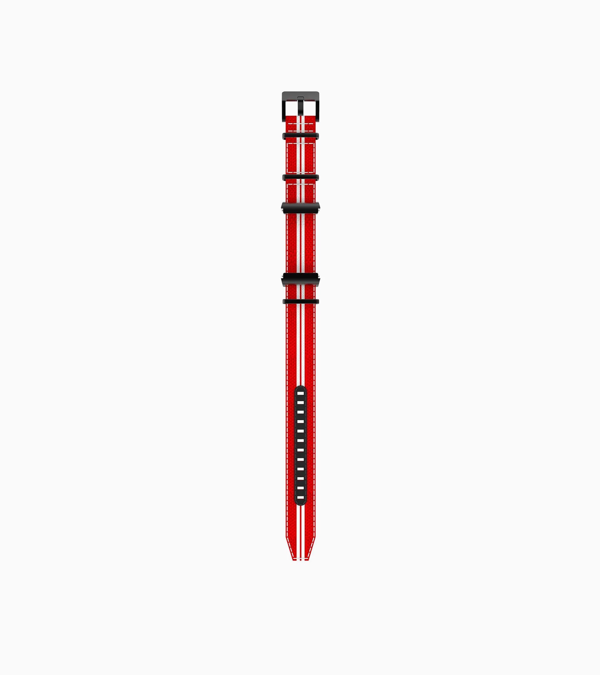 Both on the outside and on the inside of the strap, the Textile/Leather Strap shows the close connection to the Ennstal-Classic. The colors red and white on the outside echo the colors of the logo, while on the inside, the event name and the event year are embossed on the leather.