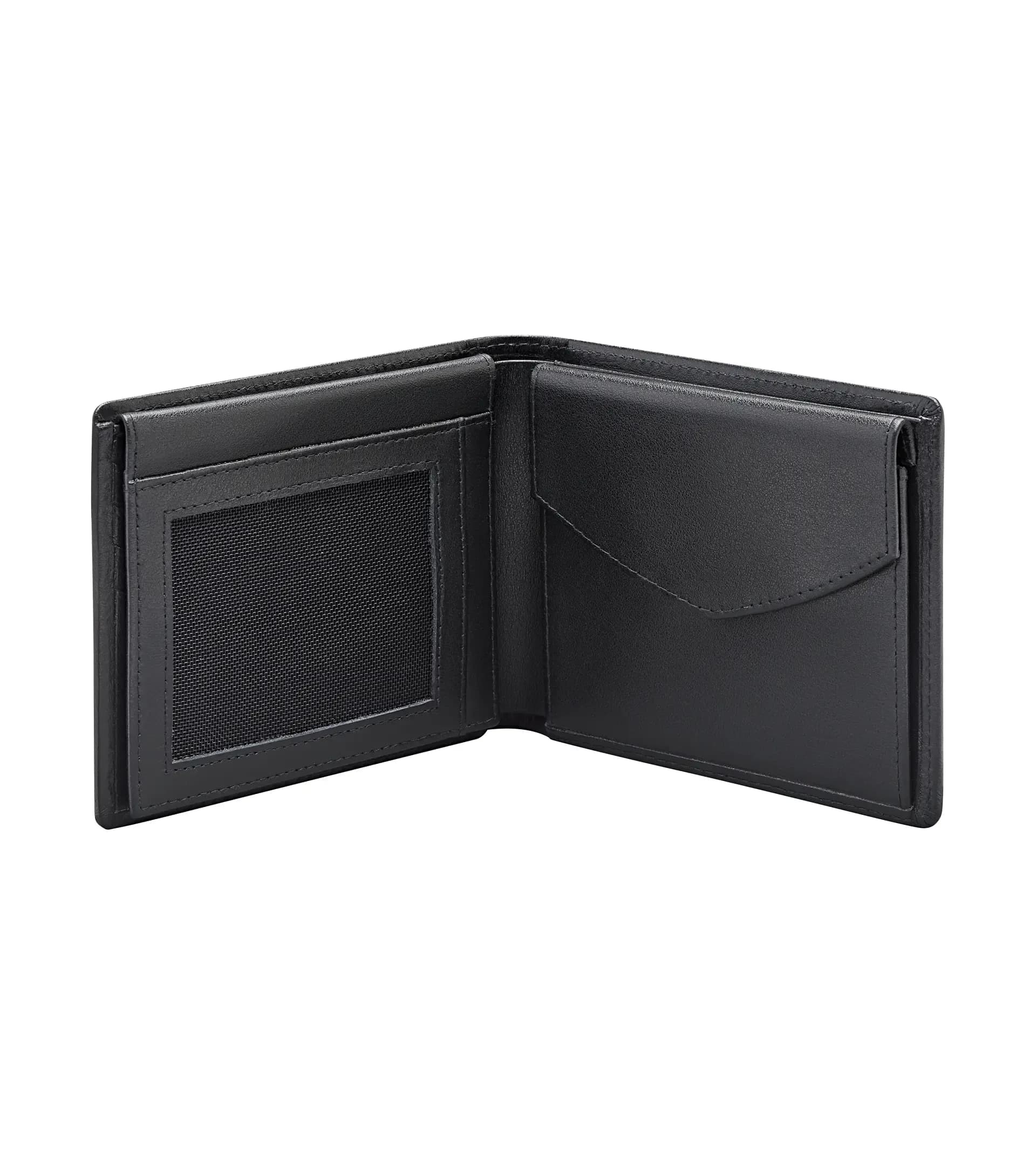 Made of premium cowhide with an embossed Porsche crest. With coin and note compartment and various slots.