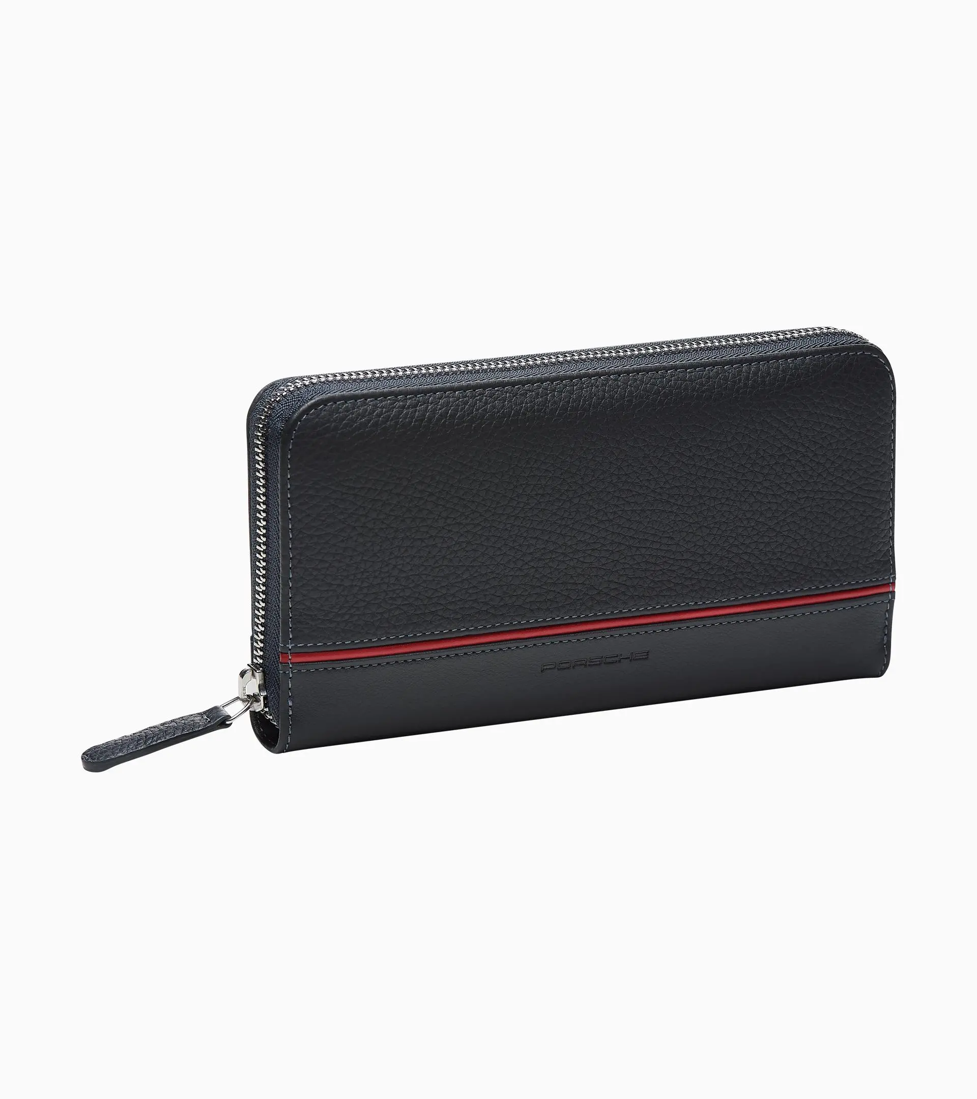 Purse in high-quality cowhide leather with embossed Porsche logo and zip.