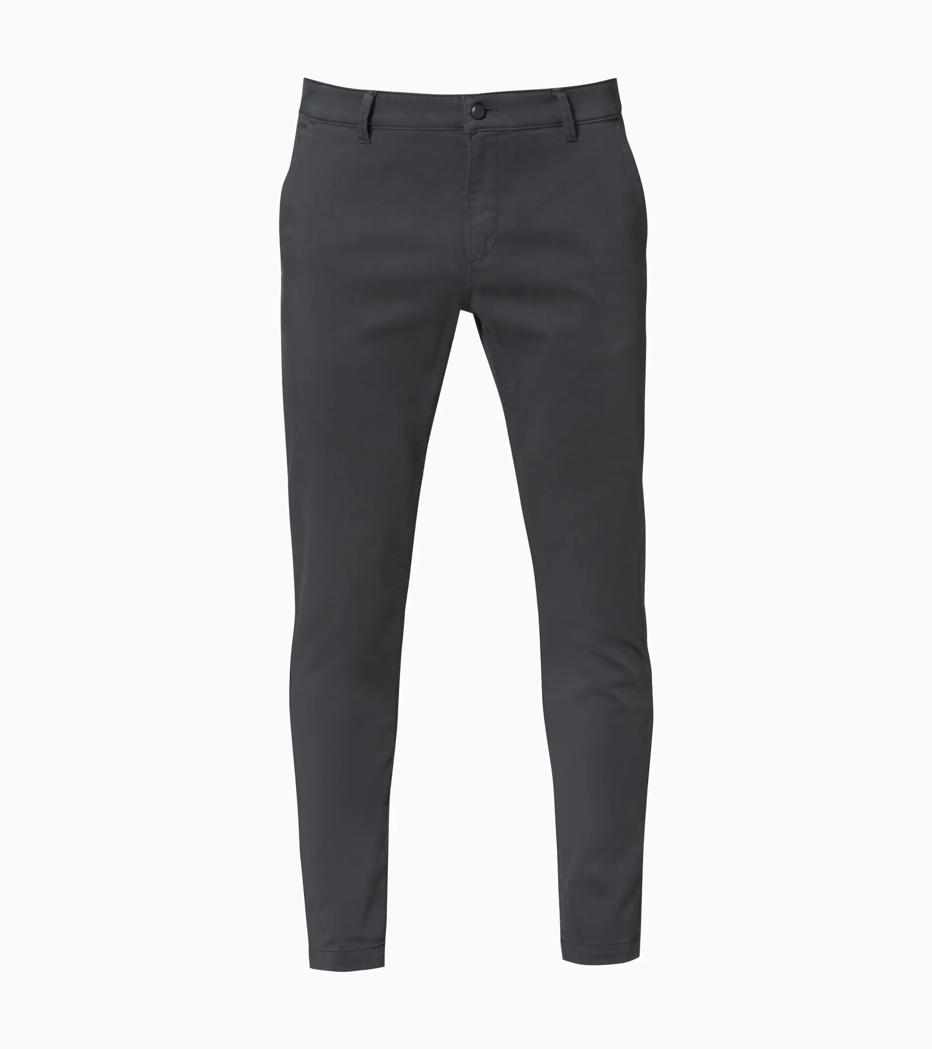 Porsche Design Basic Chino Slim Fit Trousers bring style and comfort to almost any occasion. These men’s chinos feature a slim silhouette that still provides plenty of comfort thanks to flexible elastane fibers. Luxuriously soft fabric lends casual elegance and an exclusive finish – making these trousers into a versatile wardrobe essential. Two front pockets and jetted pockets in the back for genuine chino style. A true men’s classic reinterpreted for the modern urban lifestyle.