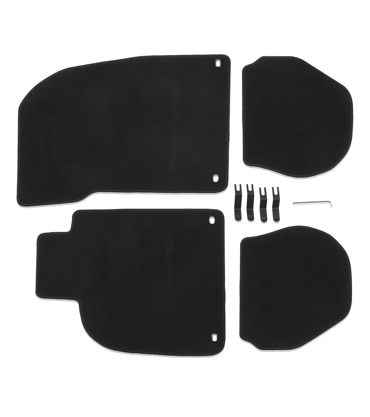 Set of four floor mats in Black for left-hand-drive vehicles, including fastening materials; suitable for Porsche 964 and 993 from model years 1989 to 1998.