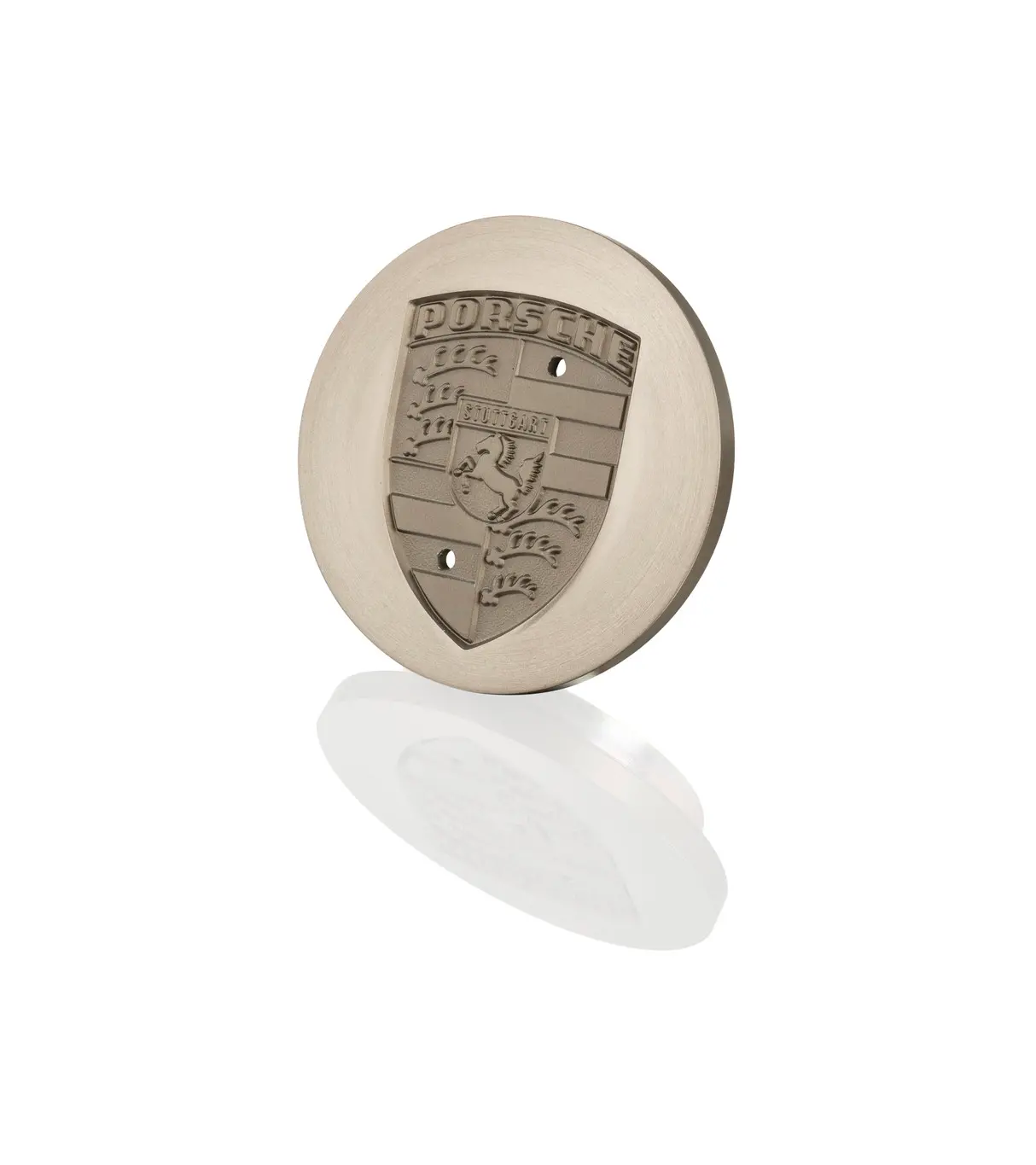 Hub cap in Platinum-Metallic with embossed Porsche crest made of forged aluminium.