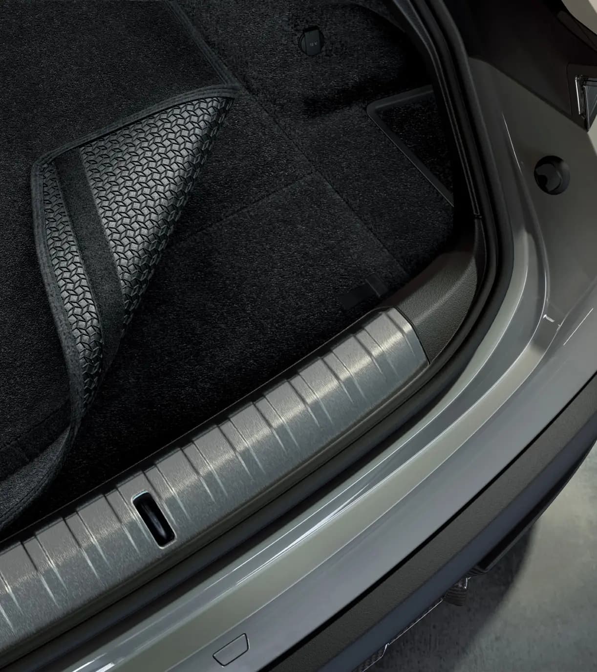 Reversible luggage-compartment mat with trim made of high-quality Nubuk leather. The waterproof and washable underside of the reversible luggage-compartment mat has a diamond look pattern. This reduces the possible slipping of the load when turned over. The reversible luggage compartment mat also offers loading sill protection to protect the vehicle from damage during loading and unloading.