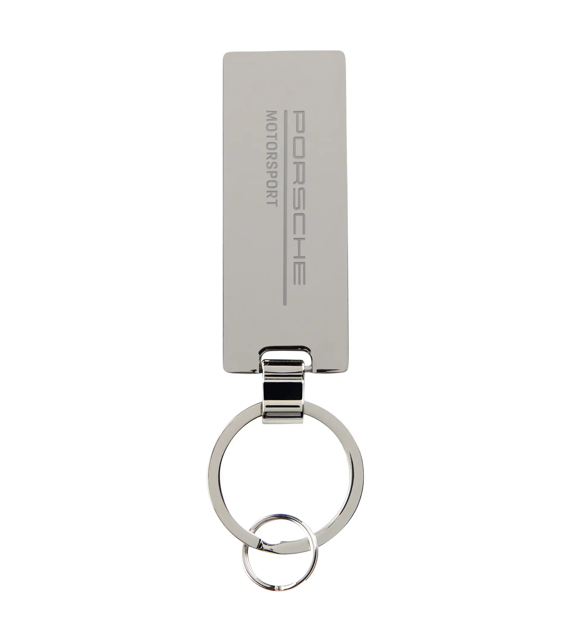 Key ring in stainless steel with lasered 'PORSCHE MOTORSPORT' signet.