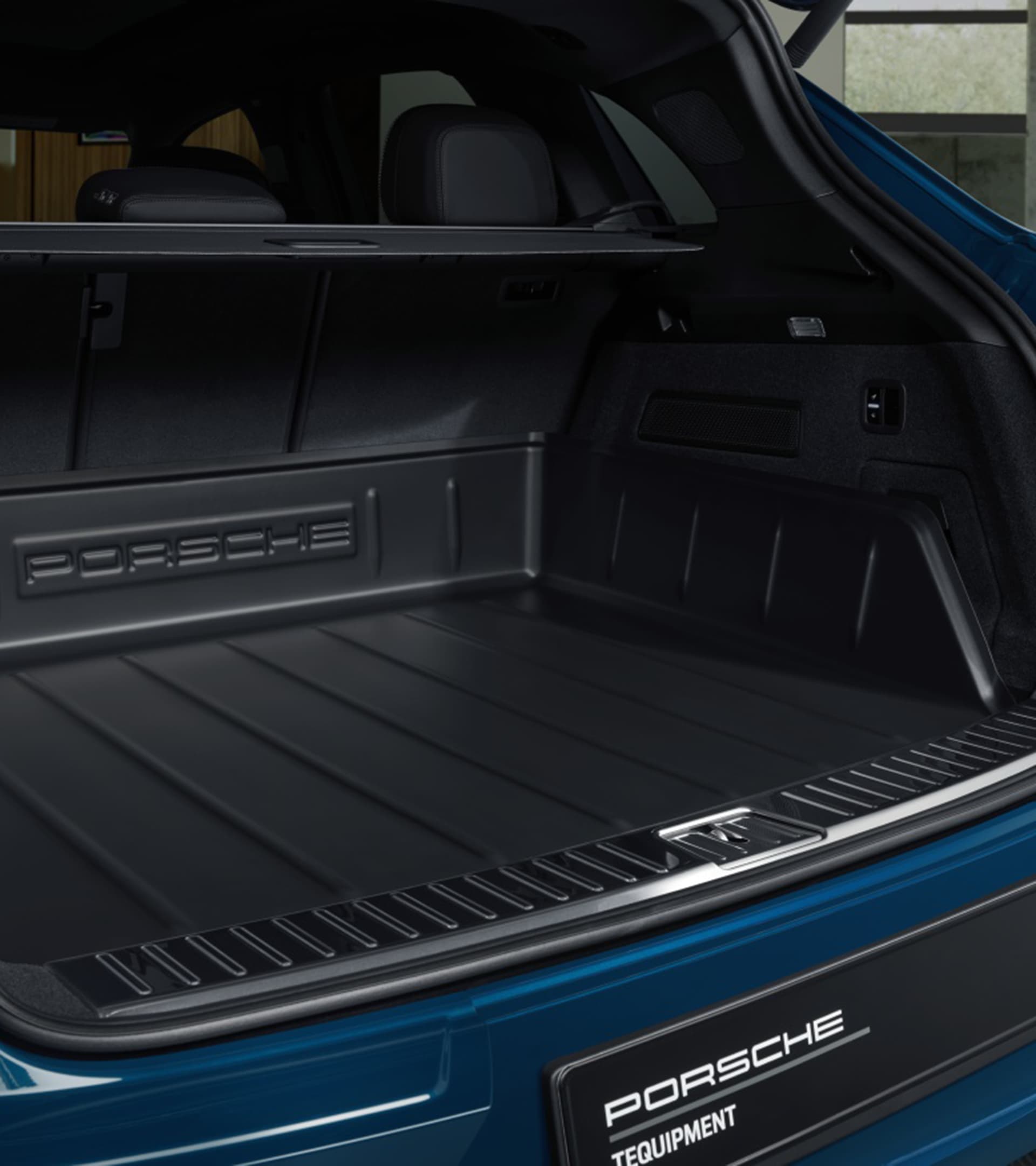 Custom-fit protective liner with "PORSCHE" logo. Waterproof and washable.