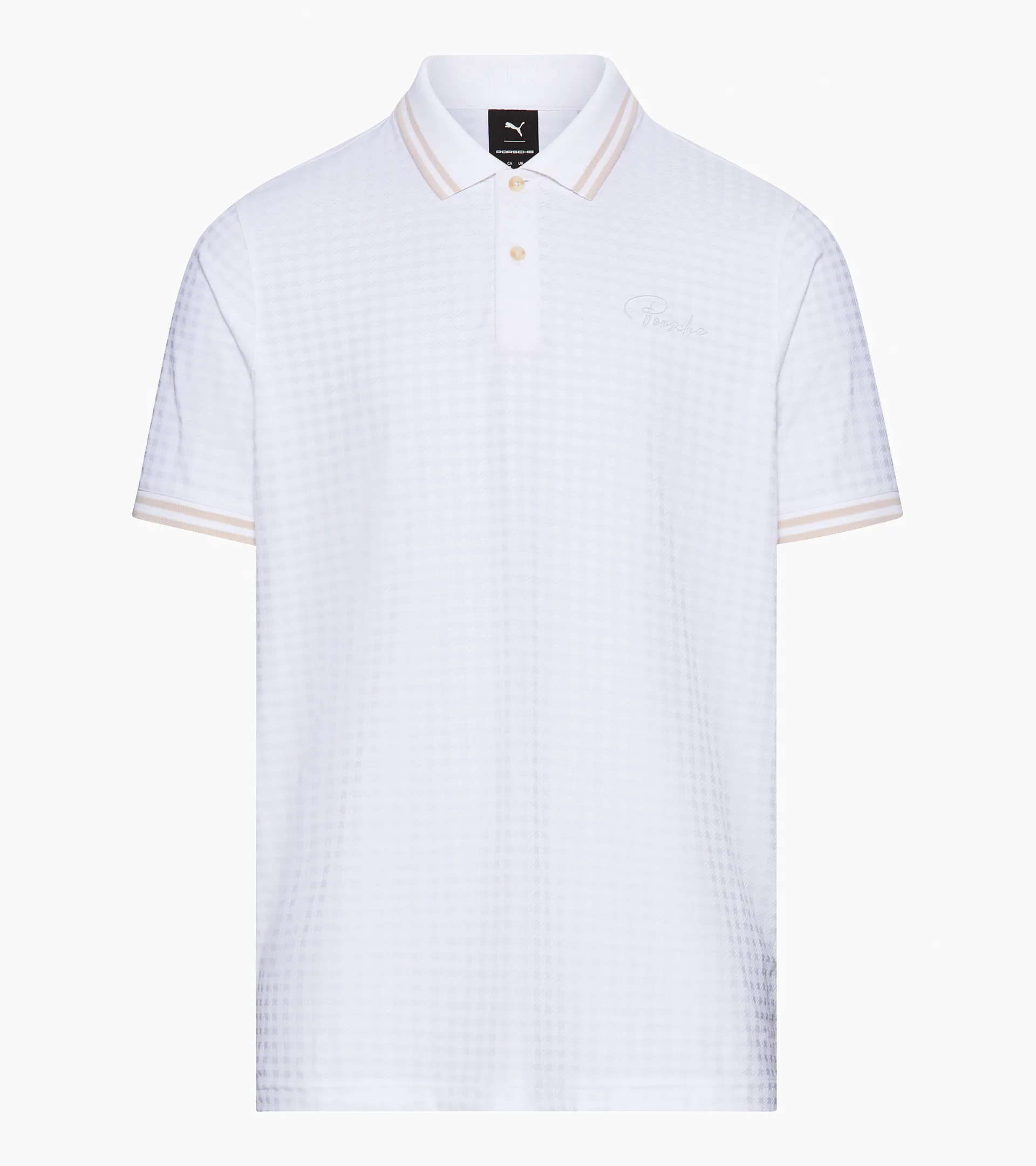 Stylish both on and off the green – the 911 Targa 60Y collection combines retro charm with timeless design as a tribute to the 60th anniversary of the sports car. The polo shirt features an impressive tonal Pepita pattern in a high-quality jacquard stretch fabric. The stretch fabric ensures maximum freedom of movement and makes the polo the perfect companion for maximum performance on the golf course.