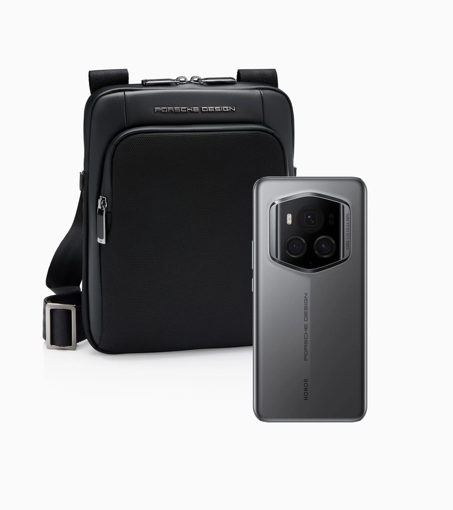 PORSCHE DESIGN HONOR Magic6 RSR in Agate Grey with Sport TWS Earphones PDT40: Perfect for all gym and outdoor fans with active noise cancellation and maximum comfort.PORSCHE DESIGN HONOR Magic6 RSR in Agate Grey with Roadster Nylon Shoulder Bag S: The designer shoulder bag made of nylon and smooth leather with an inner pocket organiser, ideal for keys and smartphone.PORSCHE DESIGN HONOR Magic6 RSR in Agate Grey with Outdoor Speaker PDS20: The Porsche Design Outdoor Speaker PDS20, the perfect companion with high-end sound quality and up to 10 hours of battery life.