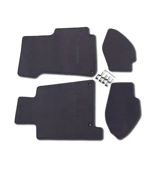Set of four floor mats in Classic Grey for left-hand-drive vehicles, including fastening materials; suitable for Porsche 928 S4/GT and GTS from model years 1987 to 1995.