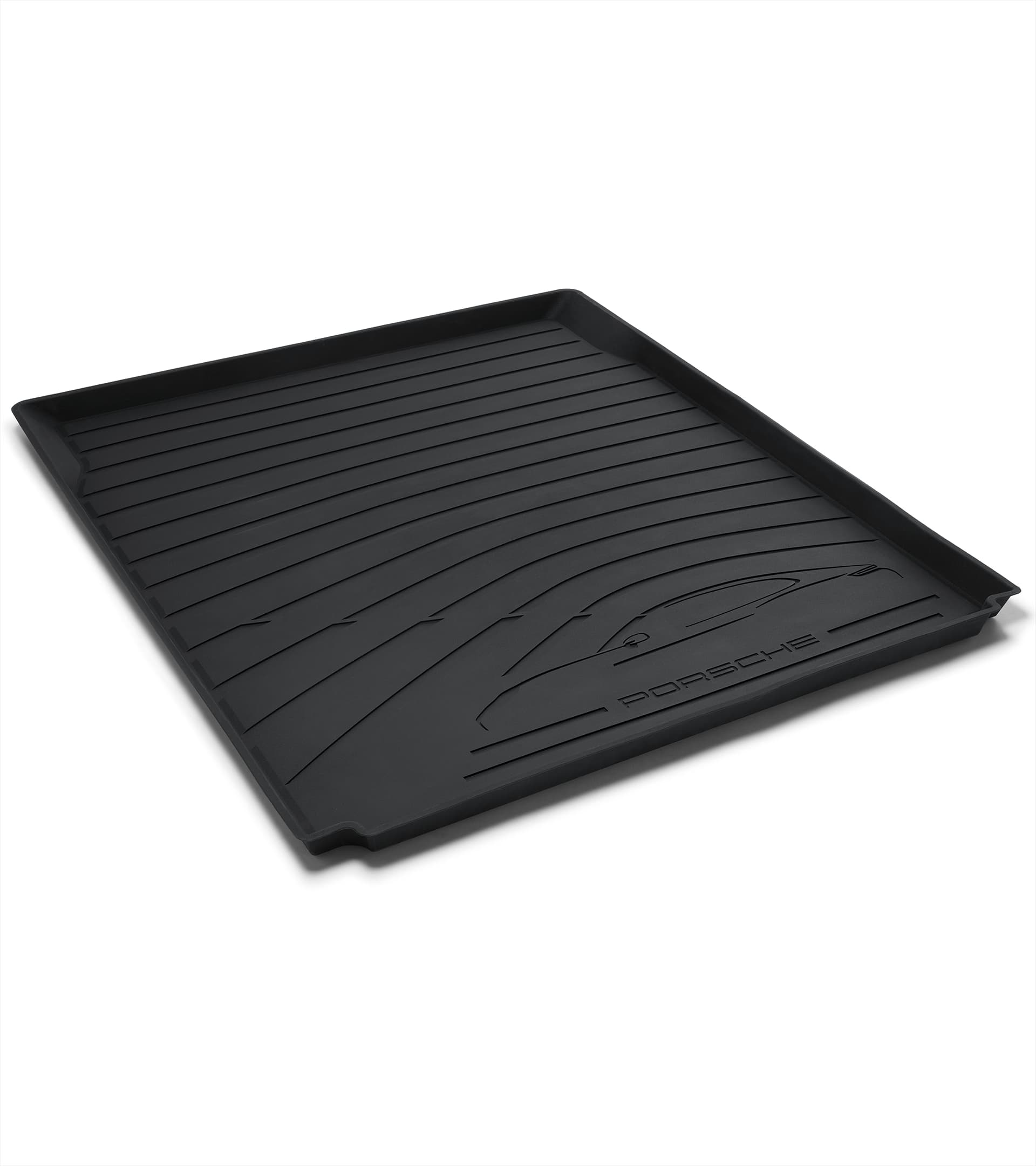 The tailor-made luggage compartment lining for the Panamera effectively protects the luggage compartment from dirt, moisture and wear. Finished in Black, the protective liner captivates with its attractive design featuring the vehicle silhouette and 'PORSCHE' lettering. The flat luggage compartment liner is made of high-quality, waterproof material and can be easily cleaned if necessary. This means the luggage compartment will always be in perfect condition and ready for whatever adventures you want to experience with your Panamera.