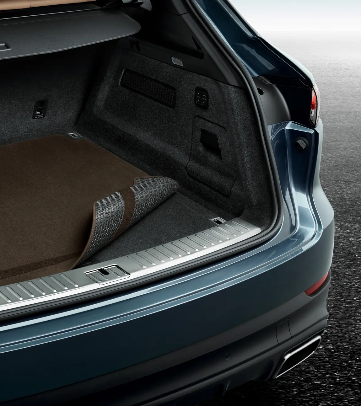 Reversible luggage-compartment mat in saddle brown with Nubuk surround including loading sill protection.