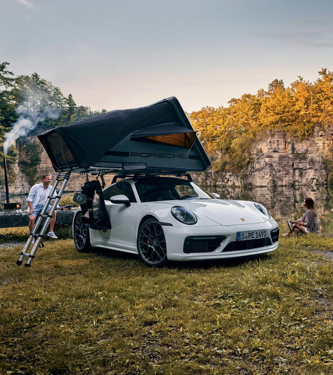A szenvedélyes Porsche-rajongók ezentúl sportkocsijuk közvetlen közelében tölthetik az éjszakát. Az eseménydús napot pedig a Porsche tetősátorban zárhatják - akár a természet lágy ölén. A megemelt fekvő helyzetből fantasztikus kilátás nyílik az erdőkre és rétekre, a hegyekre és tavakra. A tetőablakon keresztül feltekintve bármelyik Porsche rajongó égi kaland- és felfedezőtúrákra indulhat. A tetősátor a Skyview tetőablakon kívül 2 oldalablakkal is rendelkezik. Szellőzés céljából ezek teljesen kinyithatók, éjszakára pedig rovarhálóval és kiegészítő sötétítéssel zárhatók. Utazás közben a 2 személyes sátor biztonságosan elhelyezhető egy jellegzetes kemény tokban.