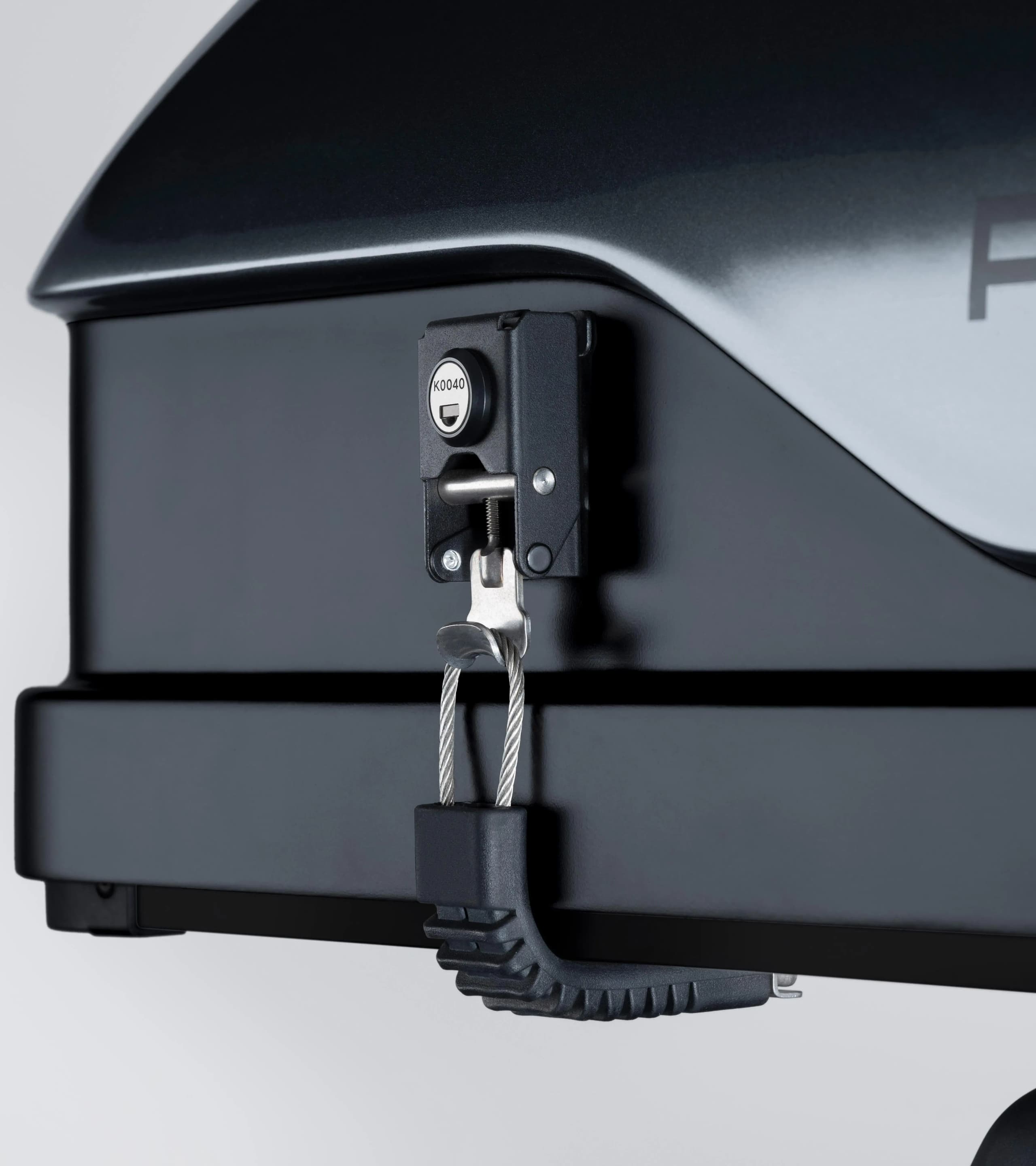 A Porsche tetősátrat az utazás előtt rögzítse a tető szállítórendszer alaptartójához és kiegészítésként a lopásgátlóval biztosítsa:
