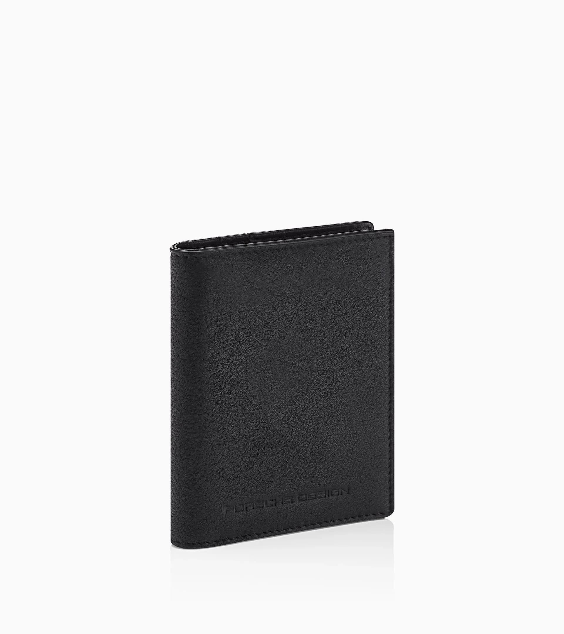 Compact men's wallet, folds both horizontally and verticallyOne mesh pocket for ID and three larger pocketsOne pocket for billsRFID protectionSix card slotsSoft, grained leather with stitched edges and embossed Porsche Design logo