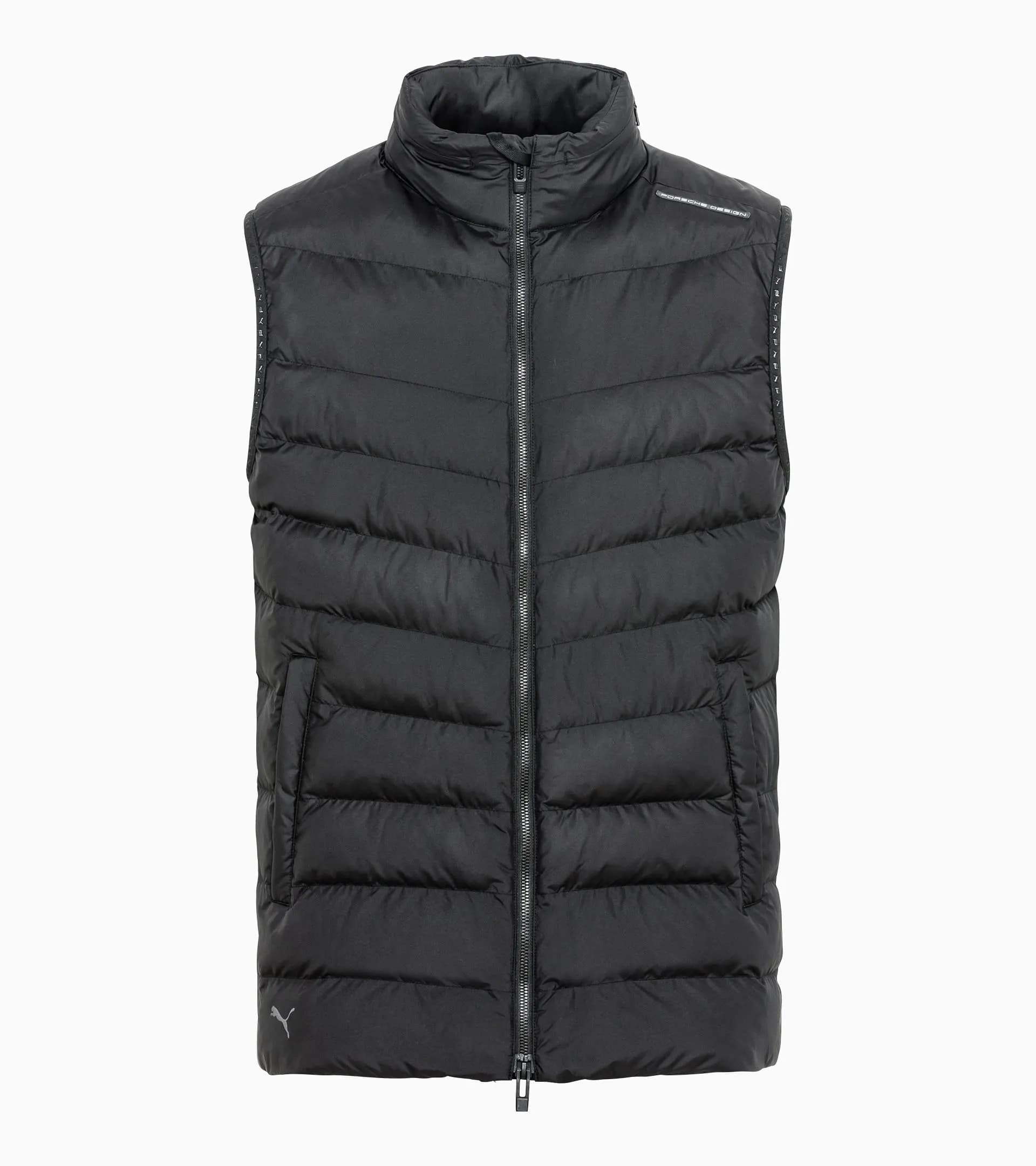 Lightweight, packable vest from Porsche Design. This sporty, water-repellent vest has a high-quality finish and UNIFI fibre filling.