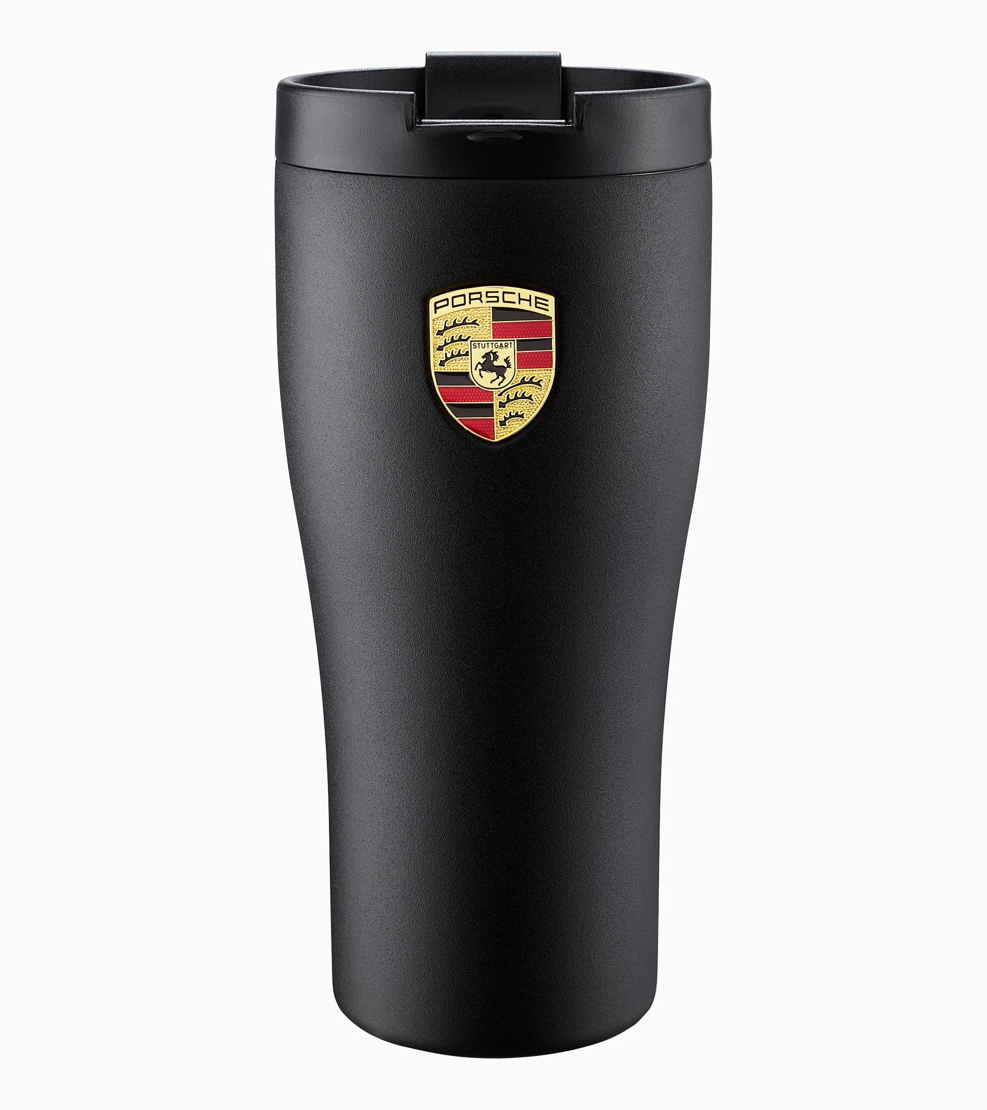 High-quality Porsche thermal travel mug with a robust powder coating. Capacity: approx. 460 ml.