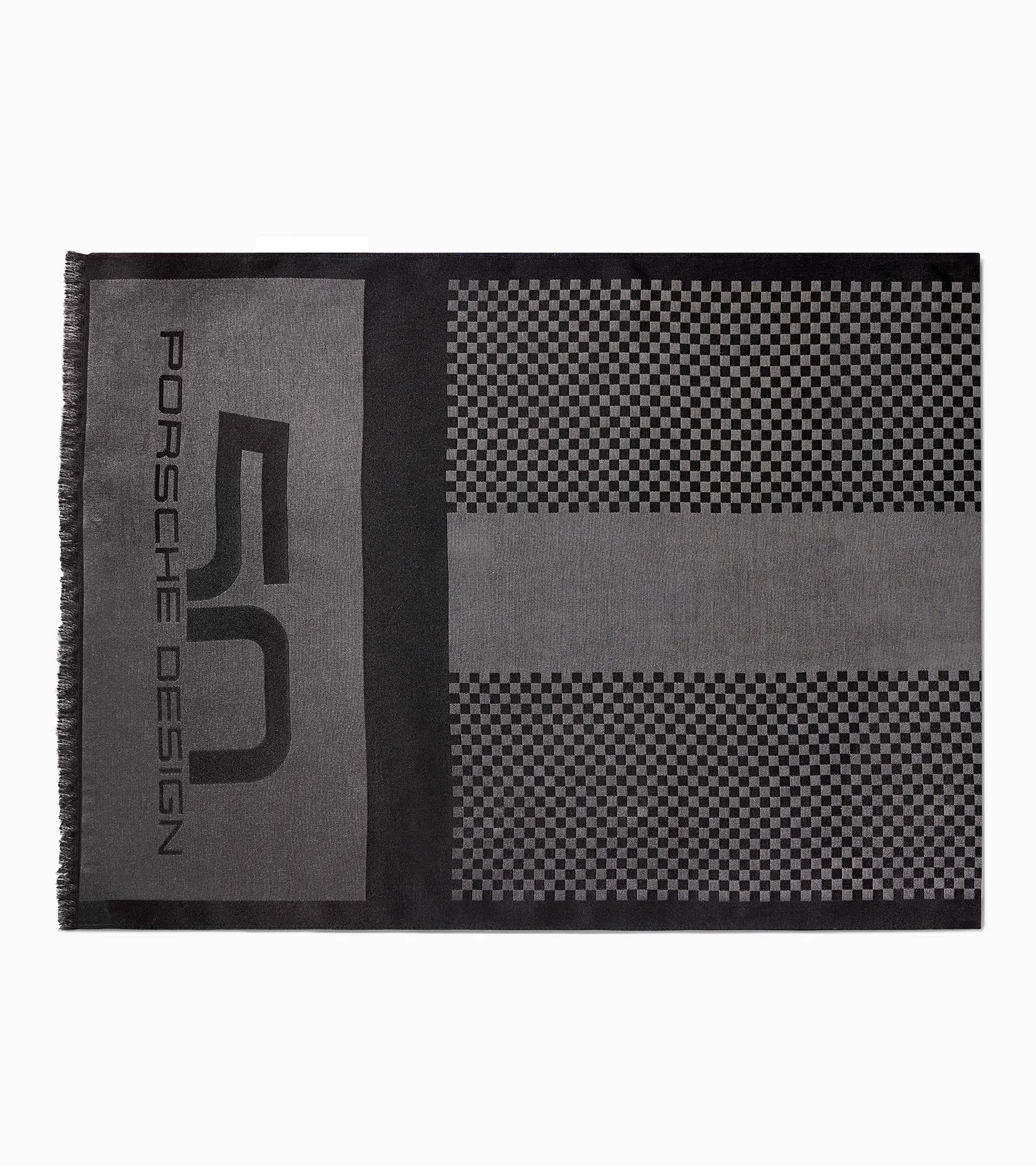 50 anni di passione ingegneristica: dal 1972, Porsche Design scrive la storia del design, con prodotti che creano un connubio perfetto di tecnologia, passione e prestazioni. La collezione limitata 50Y Porsche Design Capsule Collection rende omaggio a questo inconfondibile DNA del design. Anche la sciarpa Porsche Design 50Y Chequered Flag esprime questo concetto. La sciarpa per il lavoro, grazie al materiale esterno in seta e modal di alta qualità, crea un lieve effetto satinato-lucido, che rende ancora più dinamico l'incisivo design ispirato al Motorsport. Il motivo jacquard in tessuto della sciarpa, realizzato su misura, rievoca la leggendaria bandiera a scacchi delle gare e trasmette performance sin dal primo sguardo. Una striscia centrale intessuta tono su tono e il logo 50Y Porsche Design in jacquard sui lati corti sottolineano in egual misura il tocco tecnico e l'eredità esclusiva della sciarpa. Viene prodotta in piccole quantità in Italia. Questa sciarpa di tendenza in edizione limitata non solo conferisce chiaramente a ogni outfit più grinta, ma è anche l'accessorio perfetto per un look heritage sportivo ed elegante targato 50Y creato grazie all'abbinamento della giacca in pelle 50Y Targa, dei pantaloni 50Y Denim e della t-shirt 50Y Chequered Flag.