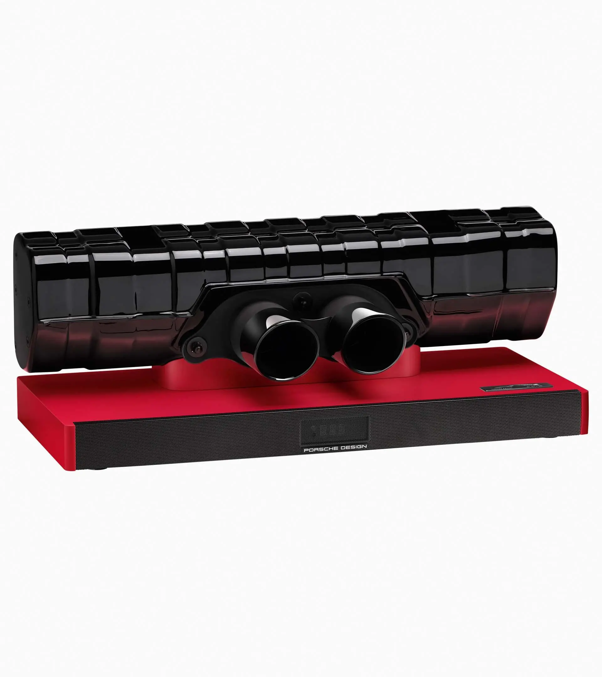 Sound potente. Anche senza avviare il motore. La nuova 911 Soundbar Final Edition in rosso carminio, limitata a 50 esemplari, traduce il fascino della vettura sportiva in suoni brillanti. Grazie a un Virtual-Surround-System 2.1 di alta gamma con decoder Dolby Digital e all'impianto di scarico originale della Porsche 911 GT3, raffinatamente rielaborato come estensione del subwoofer. Potenza di sistema 300 watt. Chromecast integrato per audio multi-room e numerosi servizi streaming premium come Spotify.