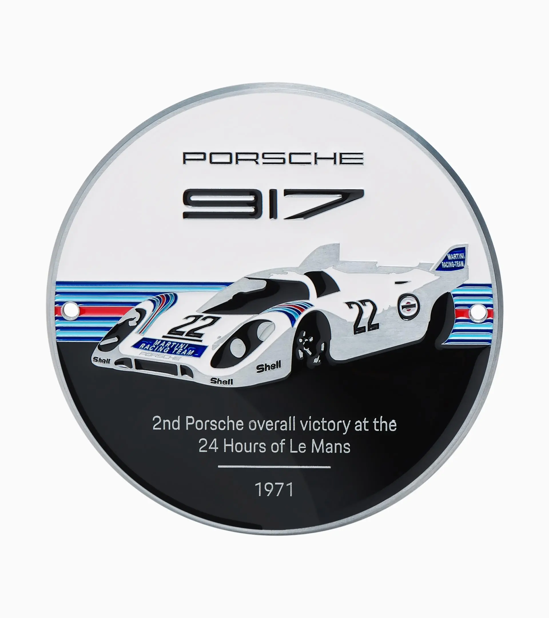 Una messaggio chiaro: il badge per griglia con l`immagine della 917 KH MARTINI RACING®, che ha conseguito la seconda vittoria assoluta di Porsche nella leggendaria 24 ore di Le Mans.