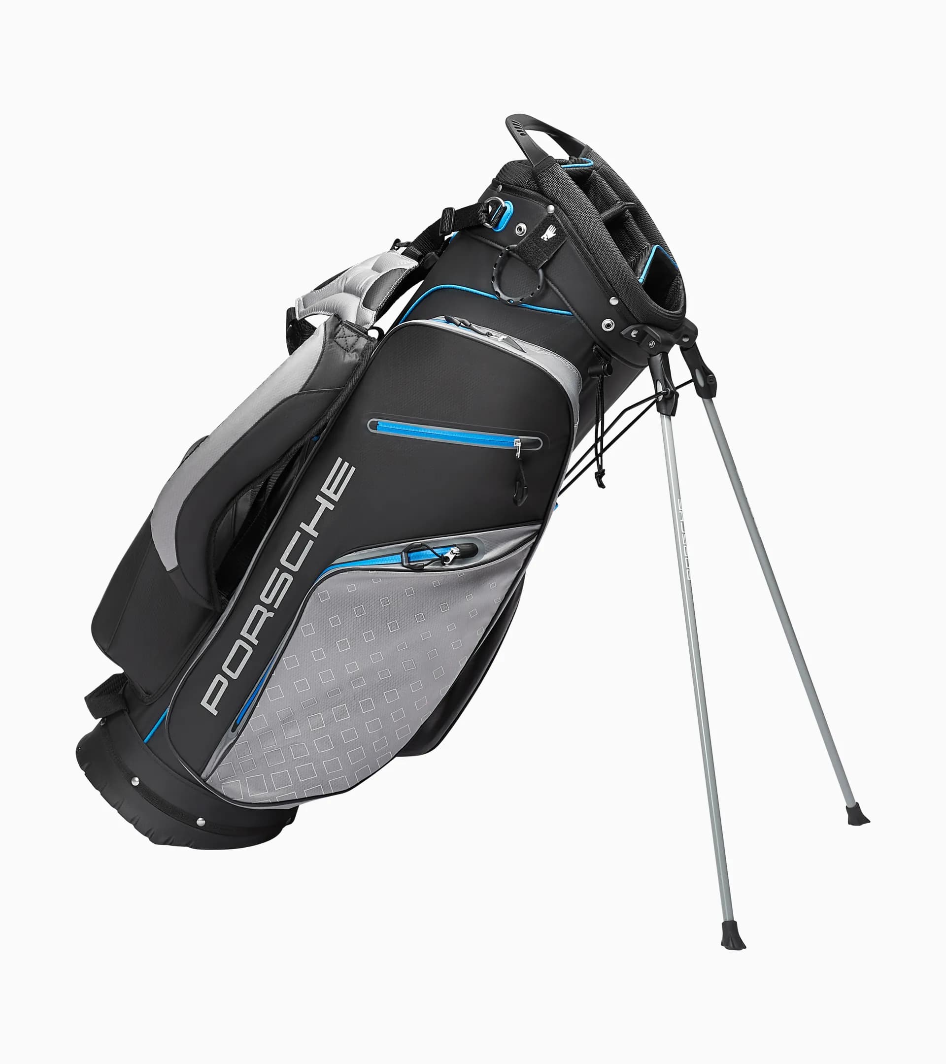 Sac trépied en nylon imperméabilisé avec 6 poches de rangement et espace pour une grande bouteille de boisson. Système de trépied intégré invisible ainsi que système de transport équilibré et réglable. Avec signature « PORSCHE » argentée et impression de grille latérale.