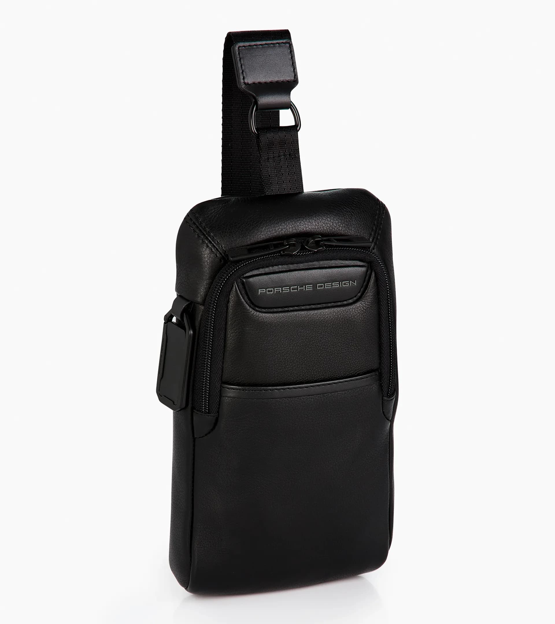 Funzionalità compatta e design ridotto: borsello a tracolla in morbida pelle di vitello goffrata. Design sottolineato da dettagli di ispirazione Porsche, come le cerniere che richiamano gli interruttori a levetta e le cuciture decorative che ricordano i sedili dei veicoli.