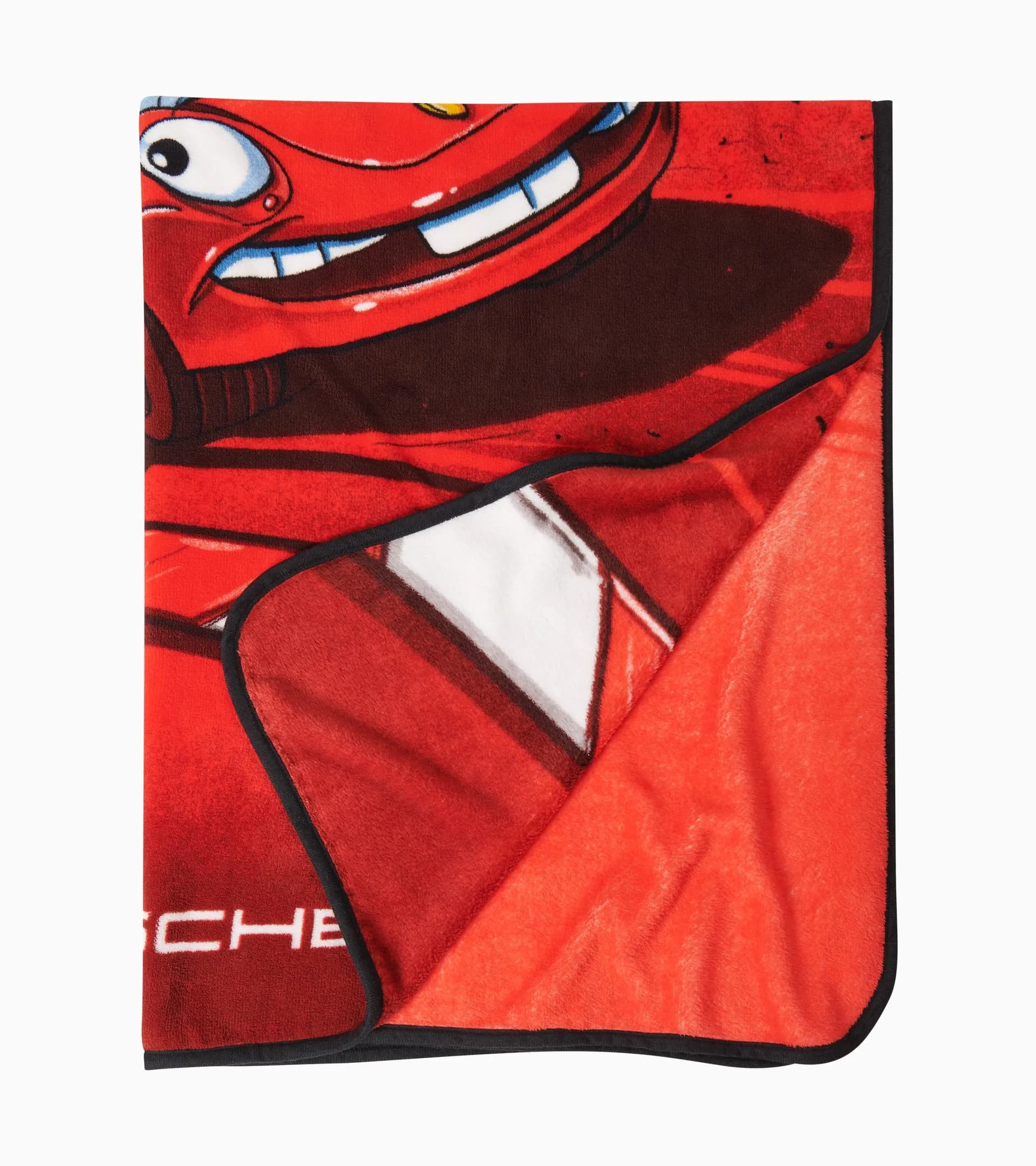Morbida coperta con motivo Porsche e scritta. Davanti in rosso, dietro in nero. Compagno ideale per i viaggi in auto.