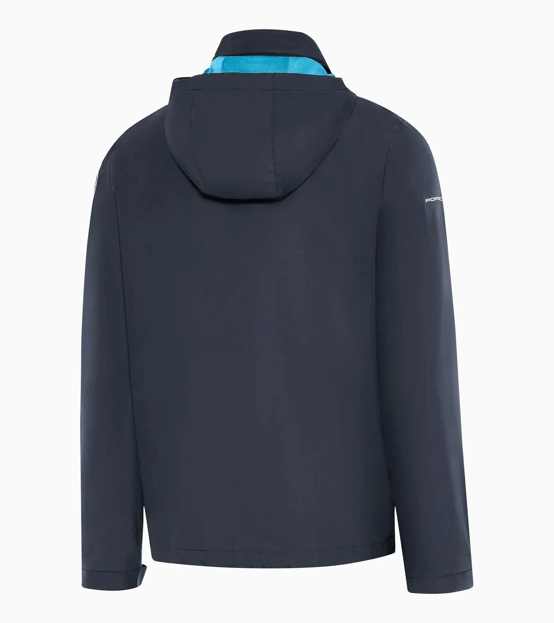 Sportiva per tutte le intemperie: la giacca a vento della rinomata MARTINI RACING® Collection non può mancare in nessuna escursione. Il colletto alto e il cappuccio proteggono dal vento e dalla pioggia. Con il bel tempo, il cappuccio può essere facilmente riposto in uno scomparto con cerniera. Anche l'orlo elastico con fermacorda è estremamente flessibile. Le lunghe tasche laterali con cerniera a contrasto proteggono gli oggetti di valore dal vento e dall'umidità. Visivamente, la giacca a vento sportiva presenta le strisce MARTINI RACING® a V sul petto e una serigrafia MARTINI RACING® sulla schiena. La scritta Porsche 3D sulla manica destra e il prezioso stemma MARTINI RACING® completano il look esclusivo della collezione.