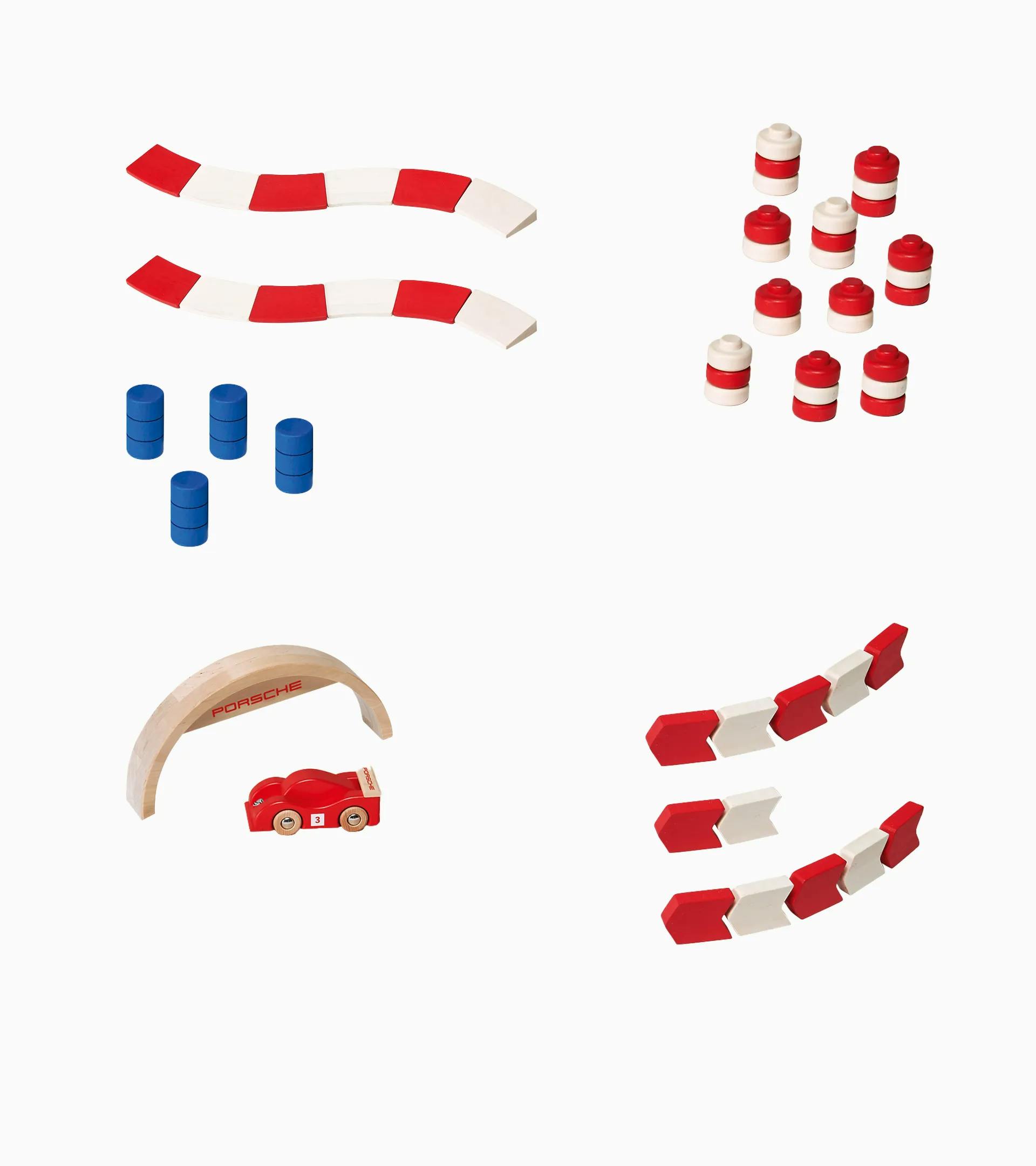 Kit aggiuntivo composto da:S: 4 cordoli, 4 guardrail, 9 pneumatici, 4 bariliM: 8 cordoli, 8 guardrail, 18 pneumatici, 8 bariliL: 12 cordoli, 12 guardrail, 27 pneumatici, 12 barili, 1 ulteriore auto (rosso), 1 arco