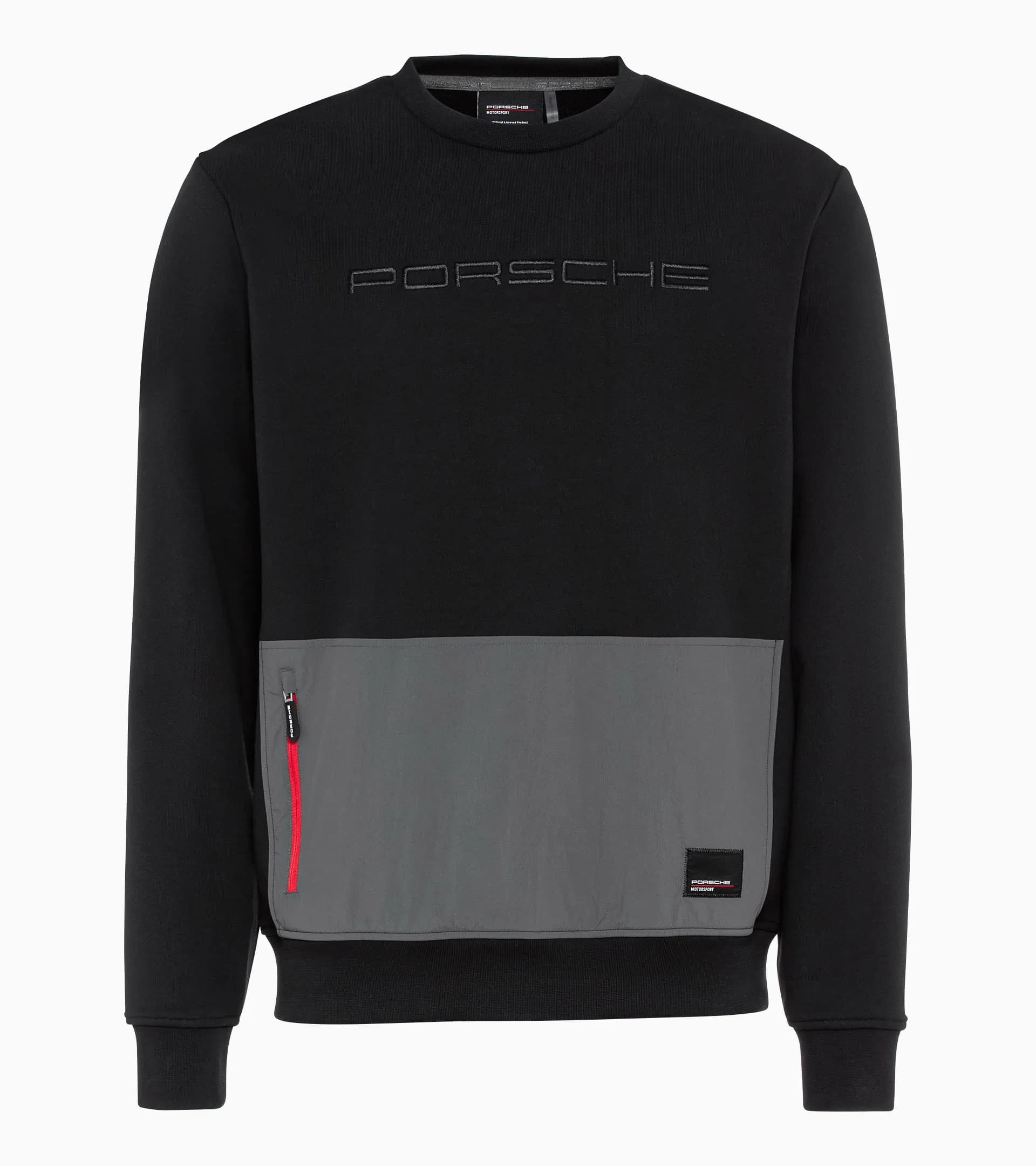 Spirito da corsa, design elegante e qualità combinati in un'unica collezione: con Motorsport Fanwear. Per gli appassionati Porsche attenti all'ambiente, il maglione in cotone biologico e nylon riciclato è la soluzione ideale per affrontare le giornate più fresche. Con il ricamo Porsche sul davanti e l'etichetta Porsche Motorsport sull'orlo sul davanti, questo maglione è un vero must per gli appassionati Porsche. Una piccola tasca con cerniera offre spazio per uno smartphone e altri oggetti. I tirazip con il marchio sono un dettaglio di design che completa perfettamente il look del maglione.
