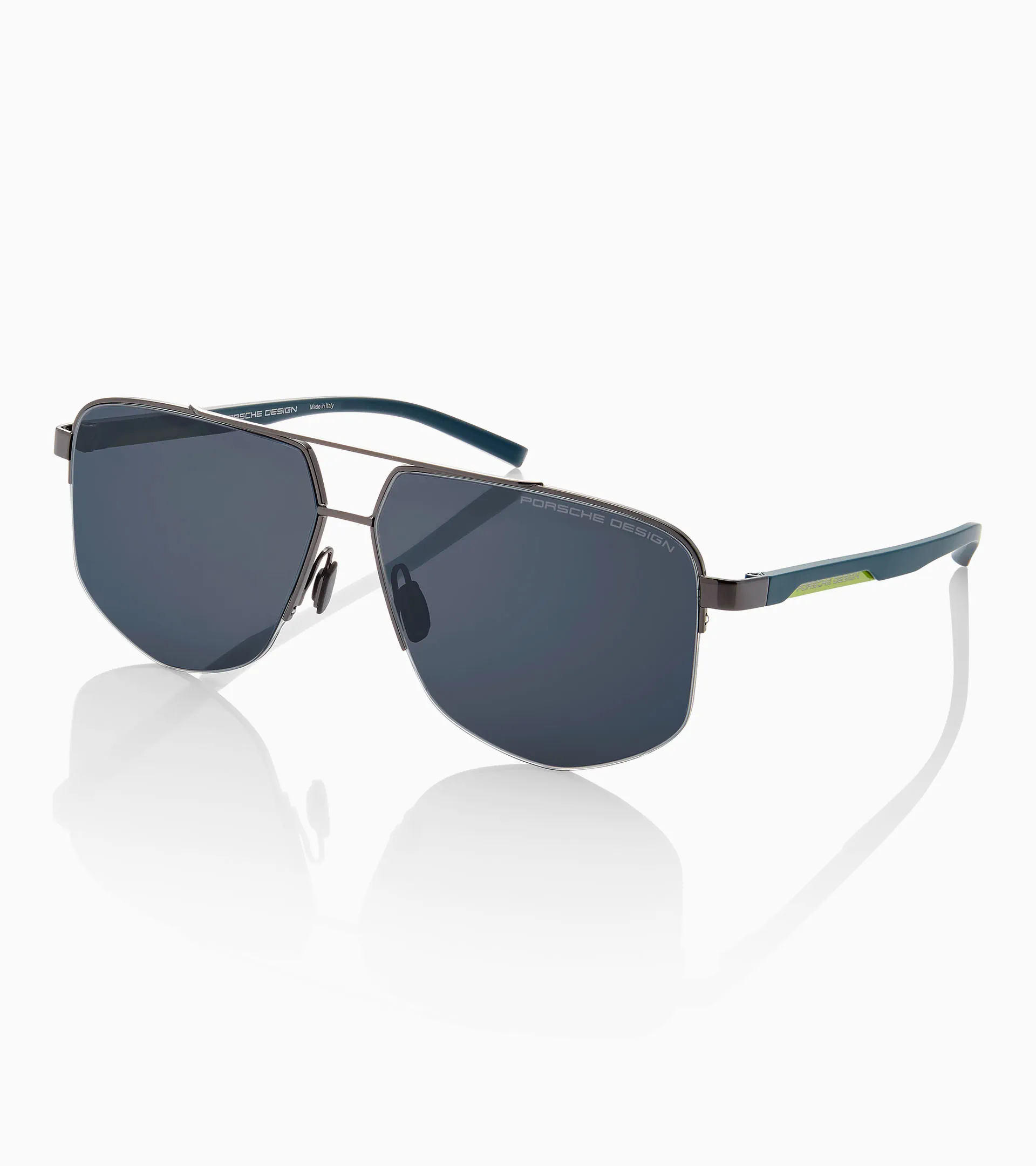 Moderni occhiali da sole unisex di design della nuova serie Porsche Design Blade. Con un esclusivo elemento cut-out sulle astine. In acciaio inossidabile e poliammide high-tech RXP®.