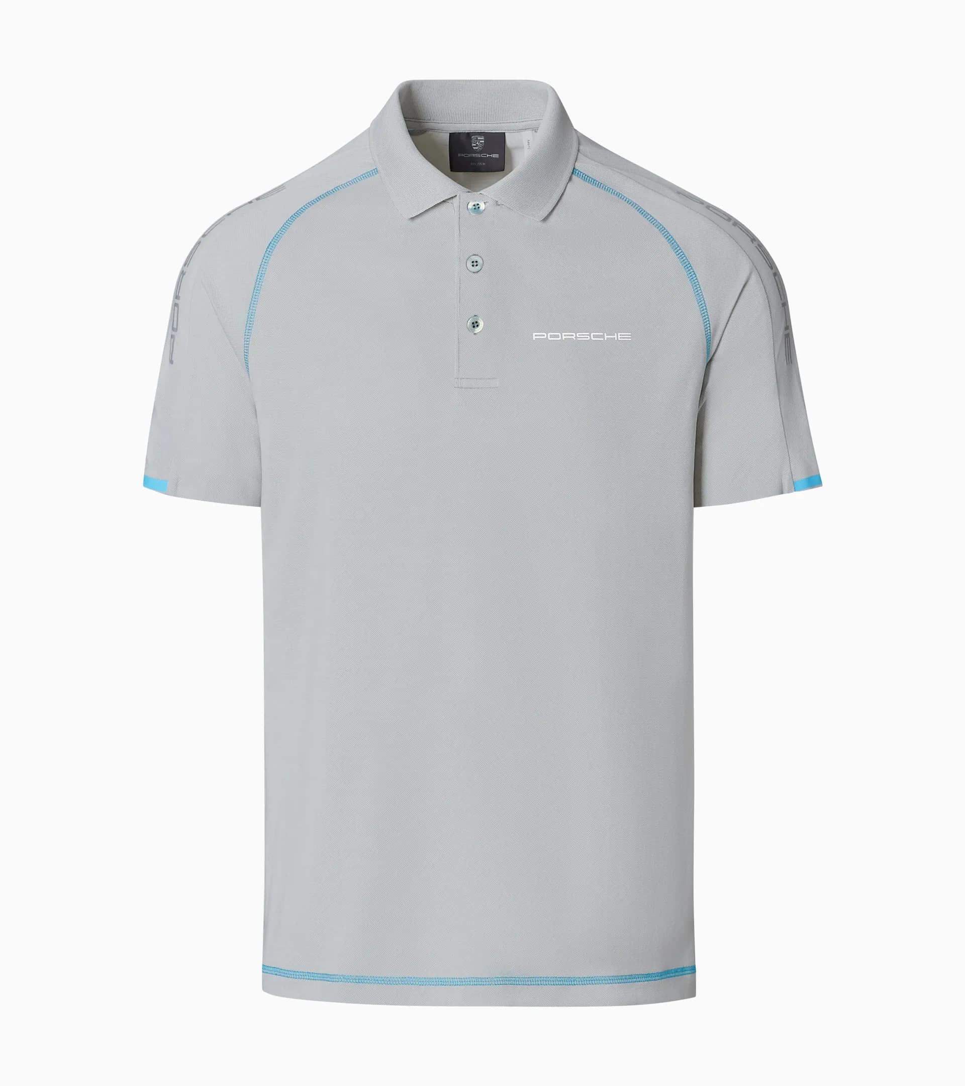 La maglia adatta alla vostra vettura sportiva: la polo da uomo della Porsche Lifestyle Sport Collection. Realizzata in pratico piqué, è elastica, ad asciugatura rapida e traspirante, quindi è piacevolmente leggera e confortevole da indossare, anche durante un'intensa attività fisica. Il logo Porsche sulle maniche e sul petto in grigio chiaro con dettagli azzurri aggiunge il giusto tocco di stile.