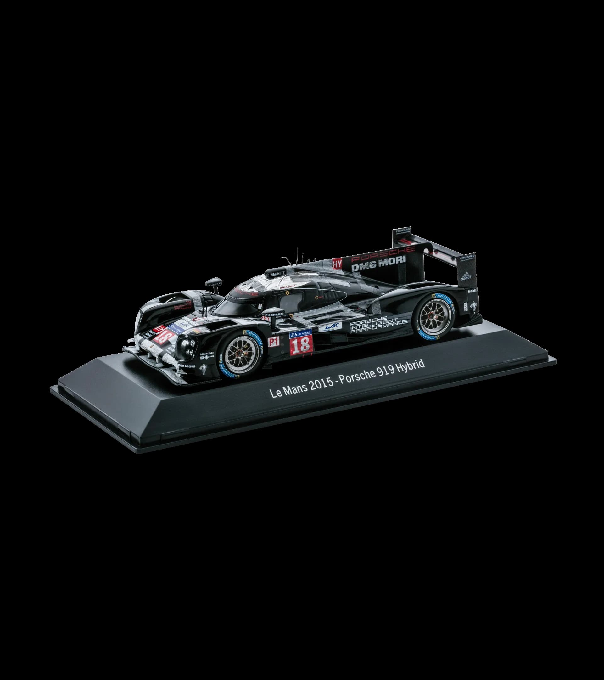 La Porsche 919 Hybrid è un prototipo della classe di vetture sportive LMP1, che ha gareggiato nel FIA World Endurance Championship (WEC) dal 2014 al 2017. Nel 2015, alla 24 ore sulla Sarthe, Porsche ottenne la sua quarta doppia vittoria dopo quelle del 1971, 1987 e 1998. La LMP1 nera con numero di partenza 18 simboleggia lo stretto rapporto tecnico tra la vettura da corsa Porsche 919 Hybrid e la vettura supersportiva Porsche 918 Spyder, anch'essa ibrida.