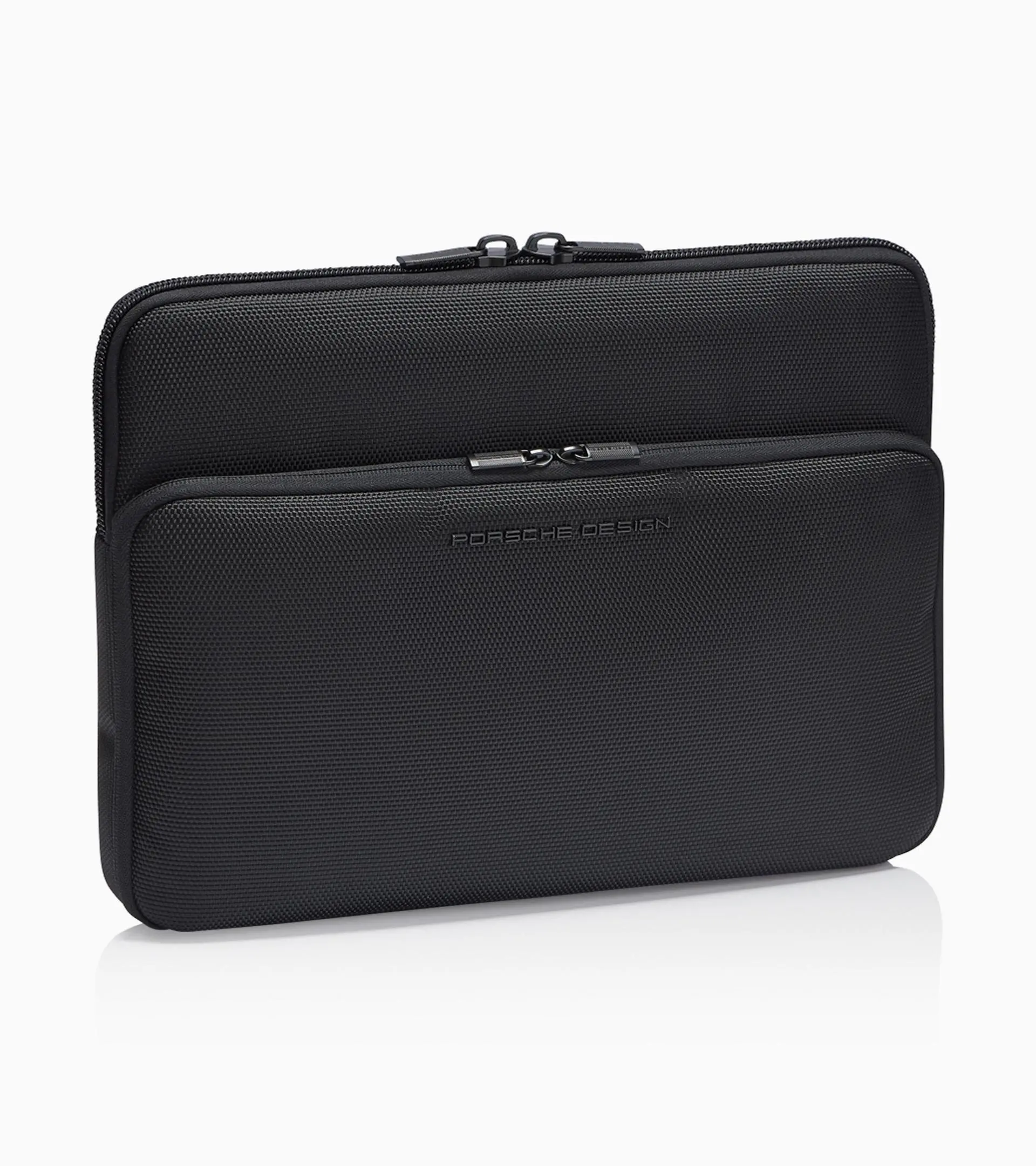High-performance design for business. The Porsche Design Roadster 4.0 E Notebook Sleeve conveys dynamic style and function in an understated package. Ultra-robust structured 3D nylon is both eye-catching and water-repellant. Neoprene lining inside the sleeve protects the sensitive surface of your laptop against scratches. An exterior pocket provides space for your smartphone, chargers, writing utensils and business cards, while a zippered back compartment rounds off the features. Form and function engineered for modern demands.