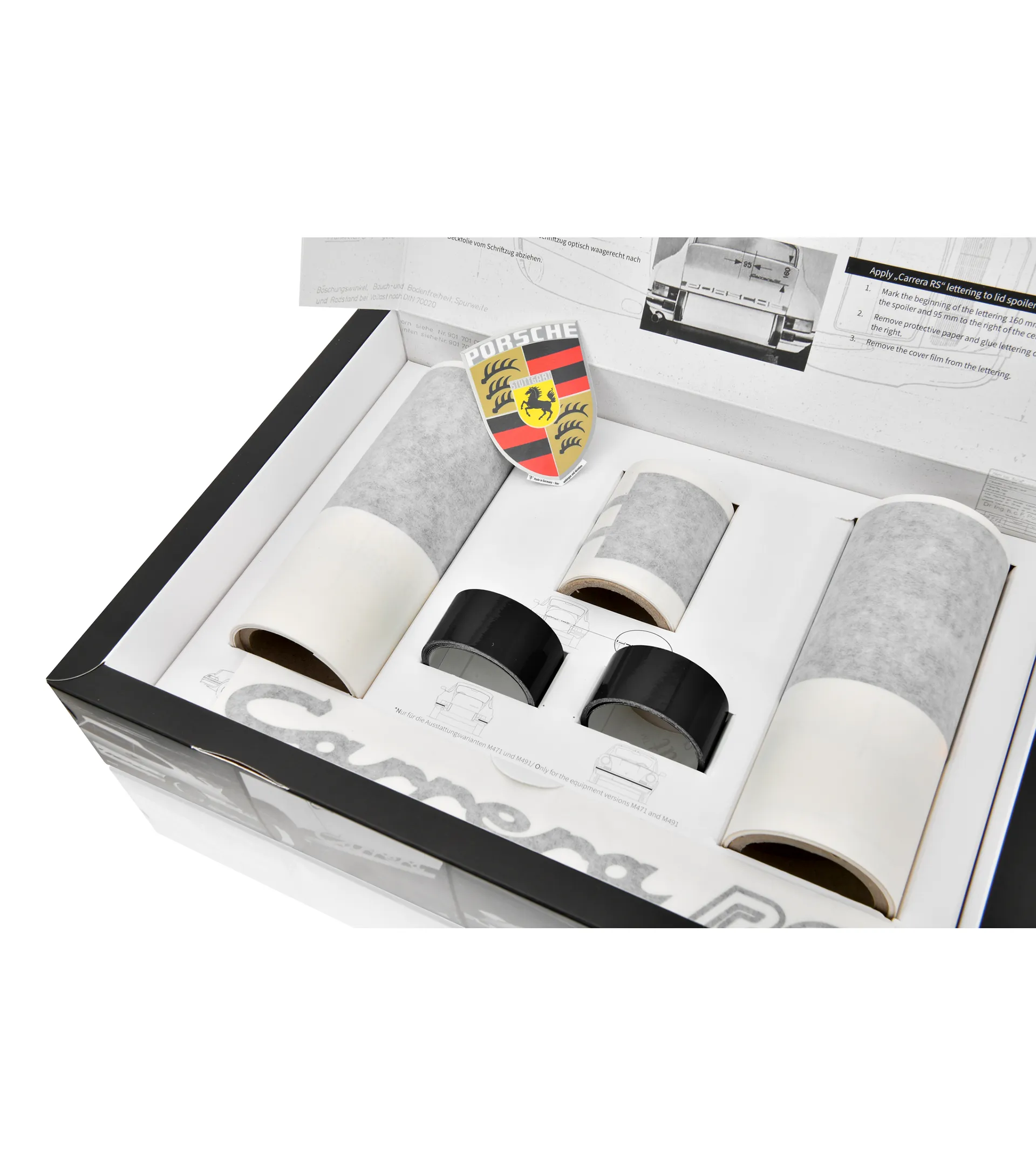 Da 50 anni la 911 Carrera RS 2.7 fa venire la pelle d'oca, e non solo durante la guida. Ora disponibile per l'anniversario: il set di pellicole decorative RS 2.7 nero, ristampato appositamente per la leggendaria 911 con coda d'anatra. Per la prima volta, il set da 7 pezzi consente di avvolgere completamente l'ambita vettura classica con la pellicola.