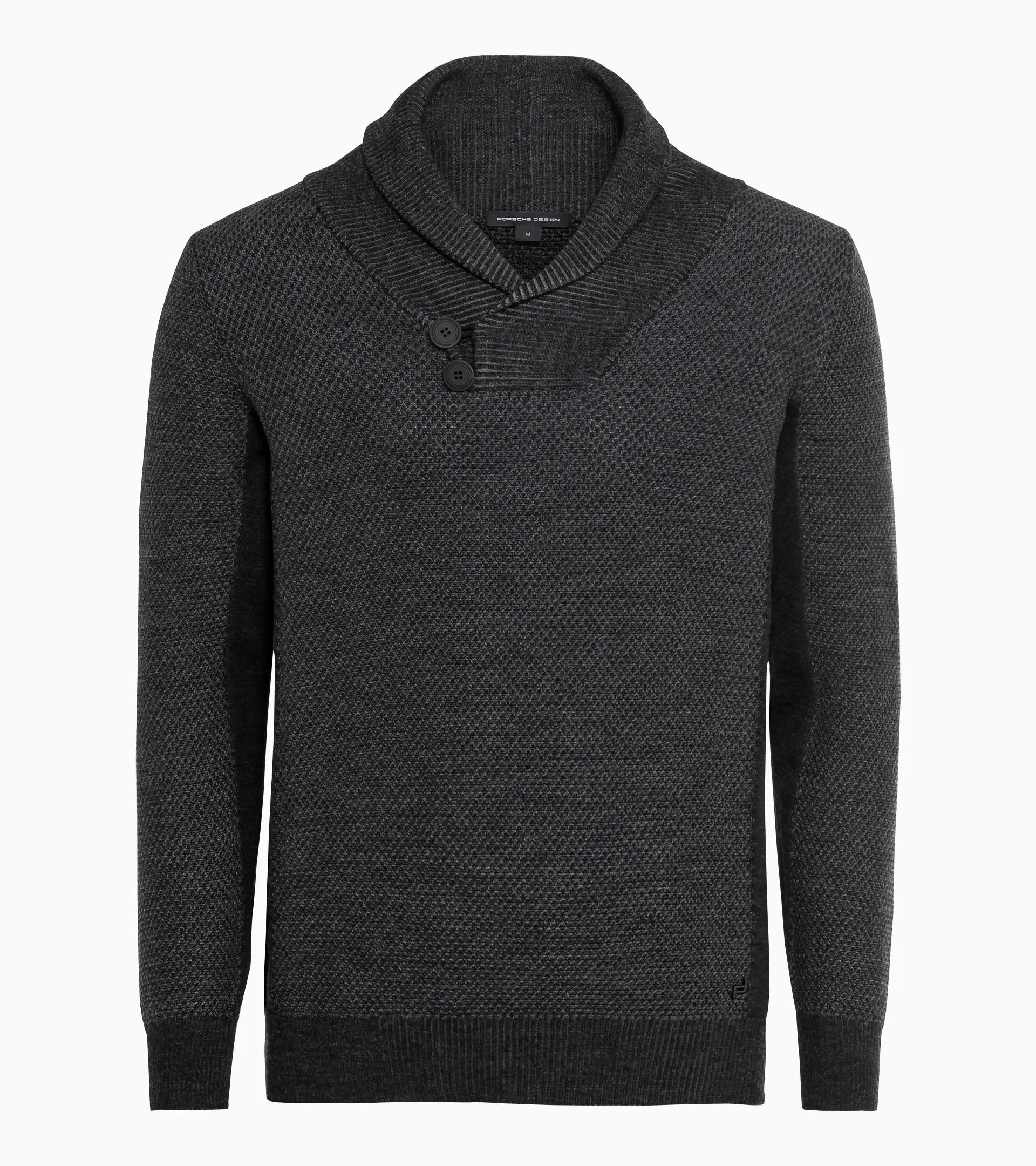 Dinamismo moderno e comfort senza tempo: la prestigiosa Porsche Design Shawl Collar Sweater combina senza sforzo apparenti opposti in un design elegante. Il maglione lavorato a maglia in morbida lana merino è prodotto in Italia in un numero limitato di capi. Un collo sciallato caldo ed elegante conferisce al pullover da uomo dal taglio dritto un aspetto rilassato. Il taglio sorprendente combina un motivo a waffle sartoriale con fasce a contrasto in maglia liscia o a coste, aggiungendo sportività e modernità. I bottoni gommati Porsche Design e un'icona PD metallica cucita a mano sull'orlo del maglione in lana merino conferiscono un tocco finale ed esclusivo.
