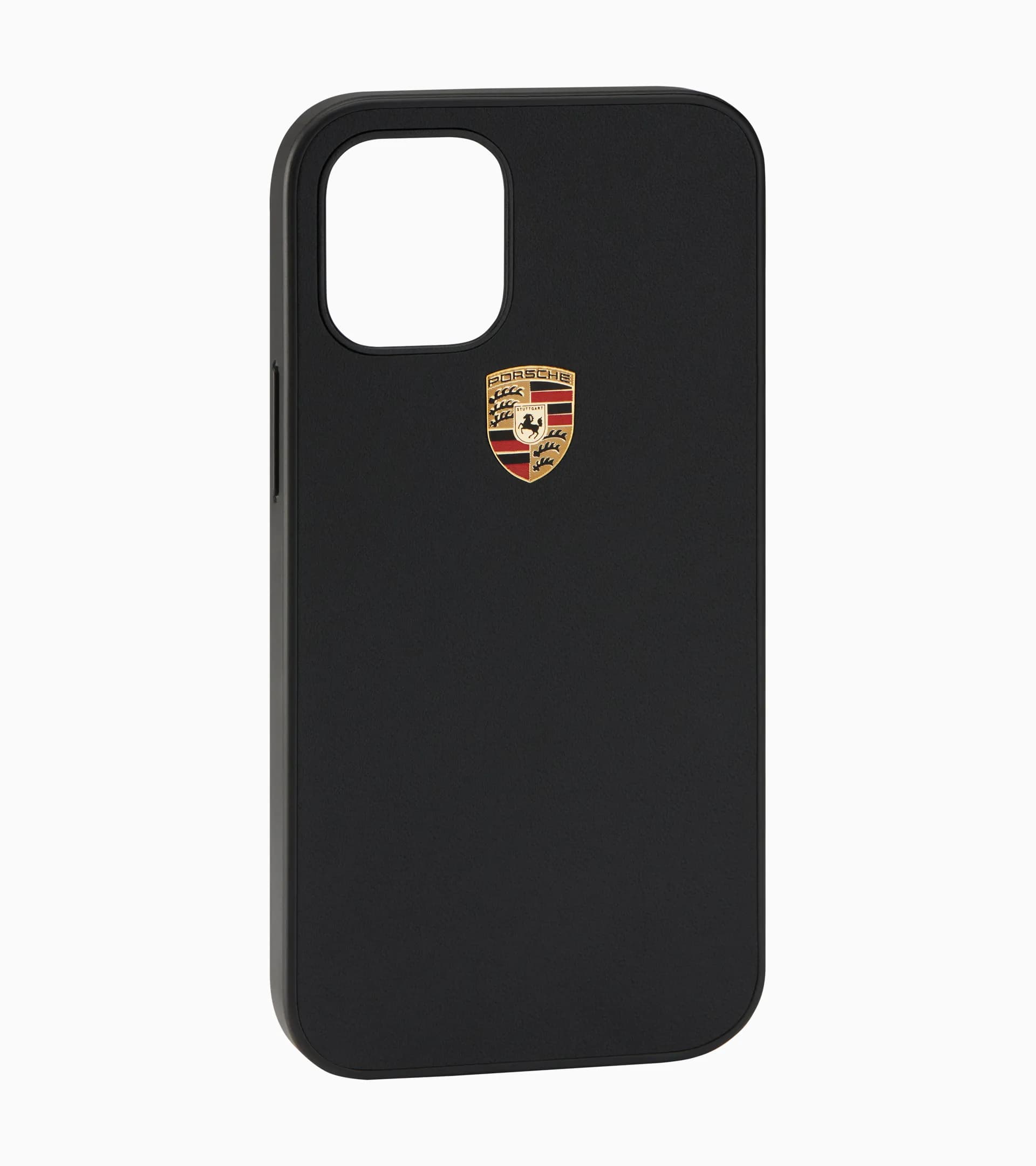 Pregiata custodia per iPhone, moderna e senza tempo, con superficie in pelle, impreziosita con lo stemma «PORSCHE».