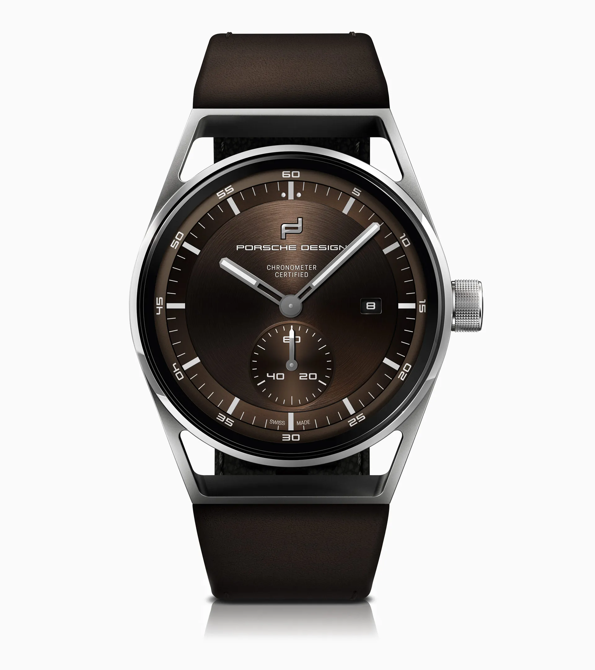 Grazie alla base trasparente, è possibile osservare l'inconfondibile combinazione di amore per il dettaglio e competenza tecnica. Entrambi gli ingranaggi dispongono un certificato di alta precisione COSC, così come tutti i calibri Porsche Design. Dal 2014, Porsche e Porsche Design impiegano queste competenze ben specifiche nella propria manifattura di orologi, dando vita a dei capolavori tecnici sviluppati in tutta autonomia. Con un design inconfondibile, il massimo della funzionalità, in qualità Porsche. La nuova collezione Sport Chrono di Porsche Design getta le basi per il pacchetto Sport Chrono con l'orologio Porsche Design Subsecond (disponibile dall'autunno 2020 nei modelli Porsche Panamera).
