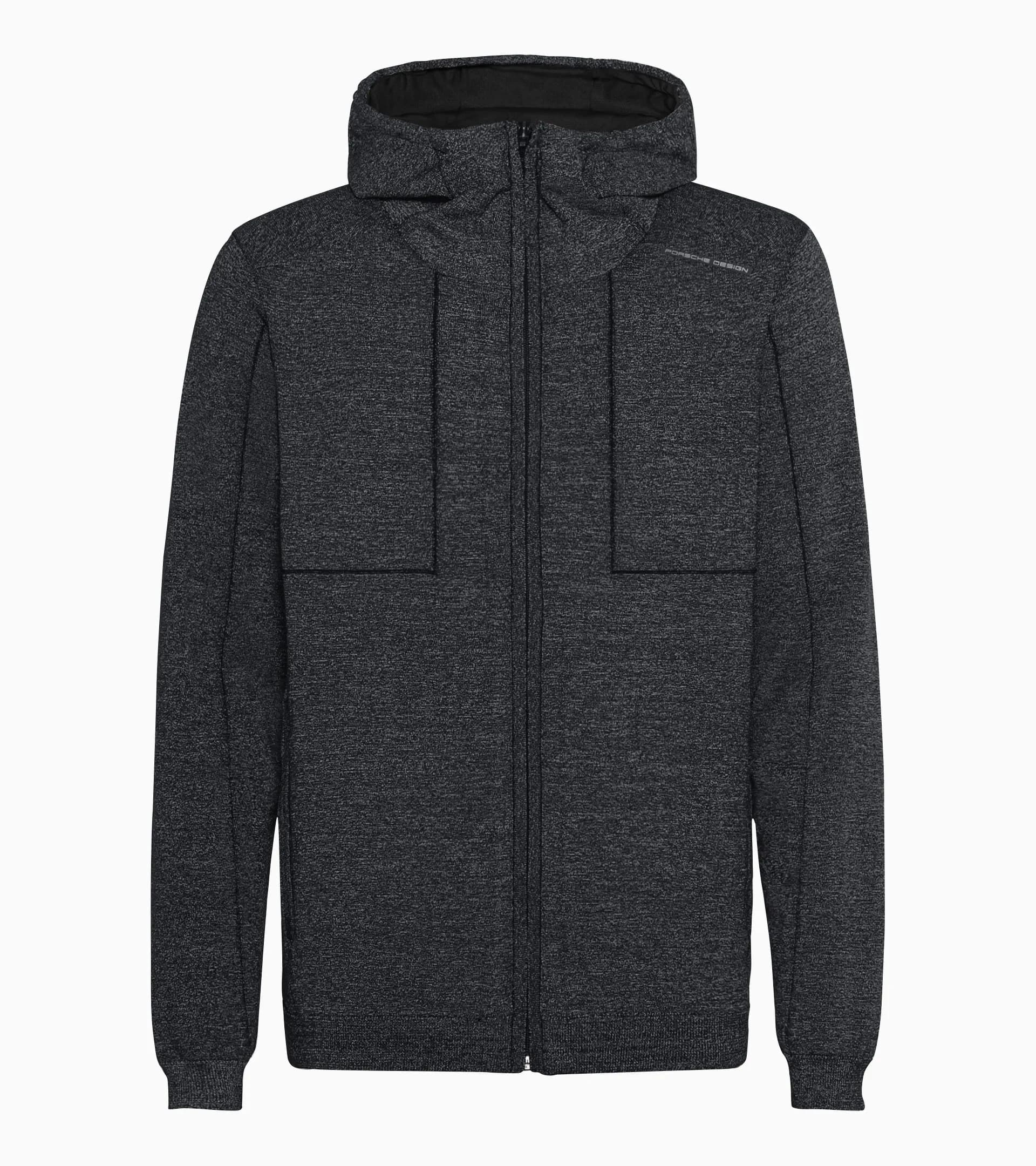 Esclusivo giubbotto funzionale Porsche Design con cappuccio. La giacca sportiva con cappuccio è realizzata in maglia EvoKNIT® riflettente, traspirante e impermeabile.