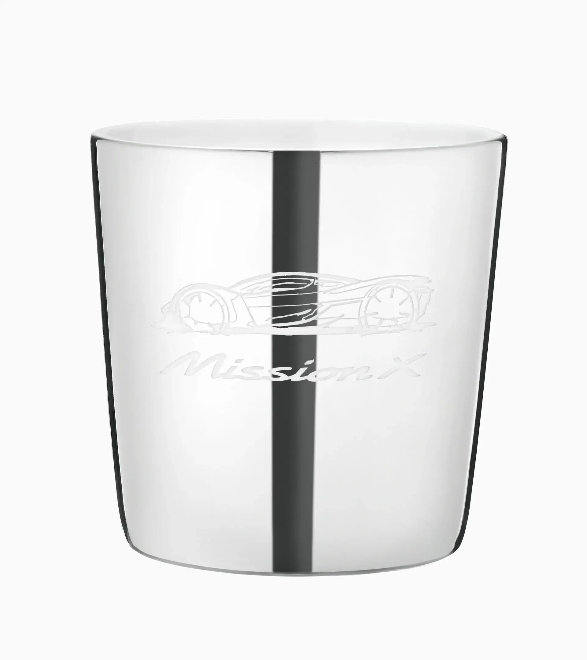 Esclusiva tazza Porsche in porcellana, smaltata in argento metallizzato con motivo Mission X. Capacità circa 500 ml.