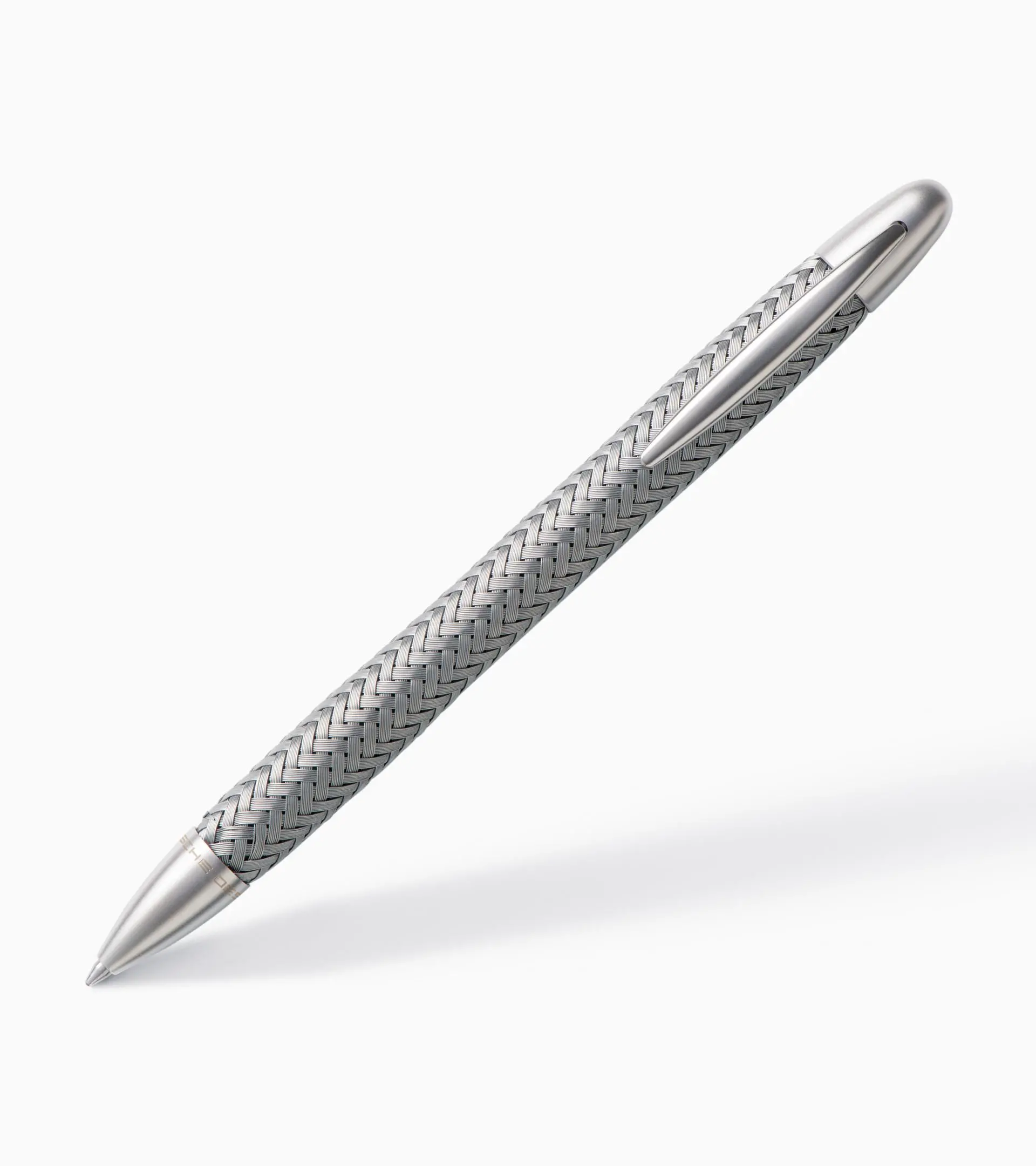Elegante e carismatico dispositivo per la scrittura realizzato in acciaio inossidabile con fili di coloure dorato. Le qualità dell'acciaio, materiale di base, sono garanzia di una durata illimitata. Confortevole flessibilità di scrittura: la treccia high-tech si contrae elasticamente quando la matita meccanica e la penna a sfera vengono premute insieme.